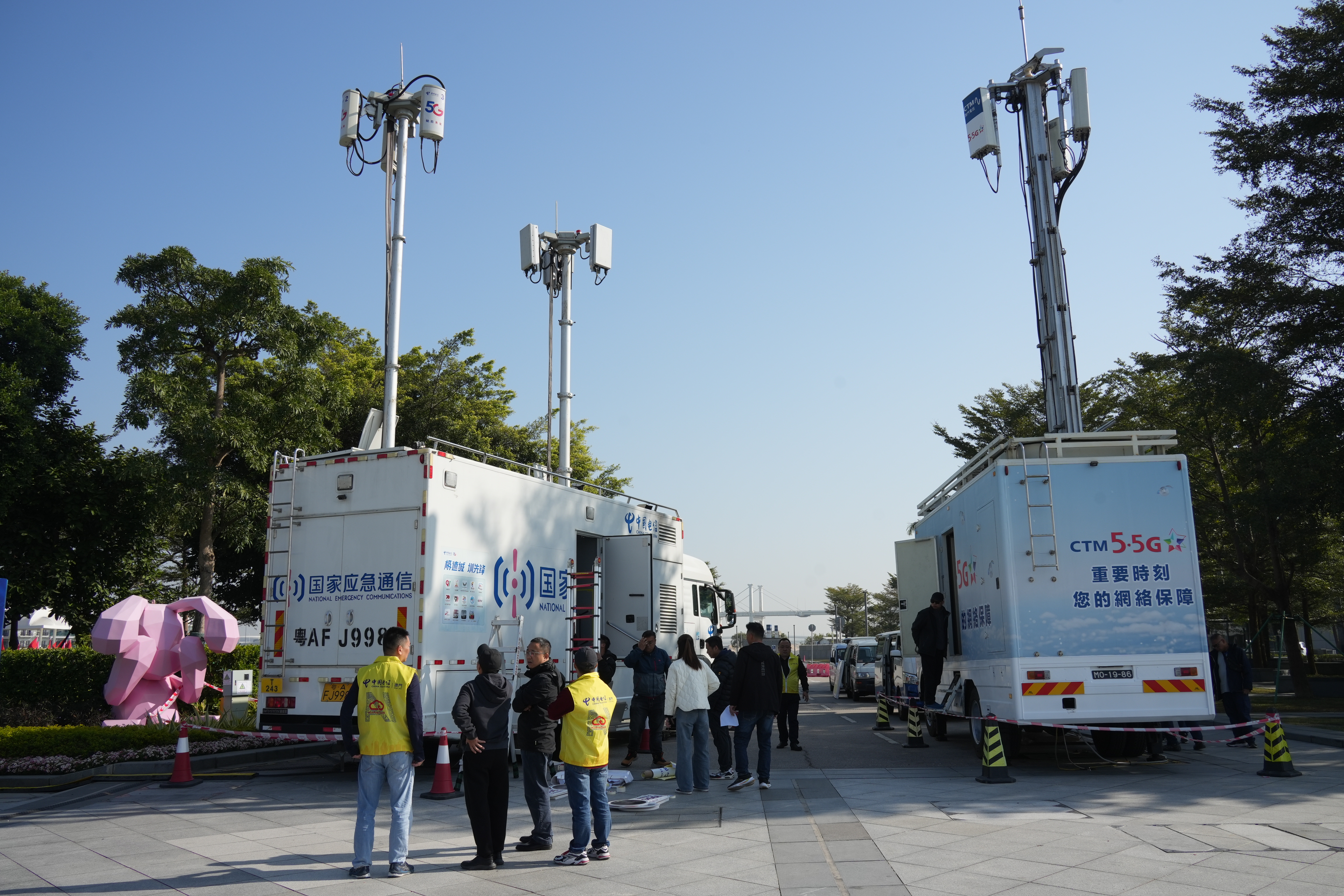 拿好記者包之後,記者便馬不停蹄,前往新聞中心。雖然中心明日才正式開門迎客,但記者出於好奇,希望提前到現場觀察,為接連三日的採訪做好充分準備。現場看到,新聞中心外停泊了兩架應急通信車,分別來自澳門電訊和中國電信,為新聞傳播確保快速、暢通、有效的通信保障。