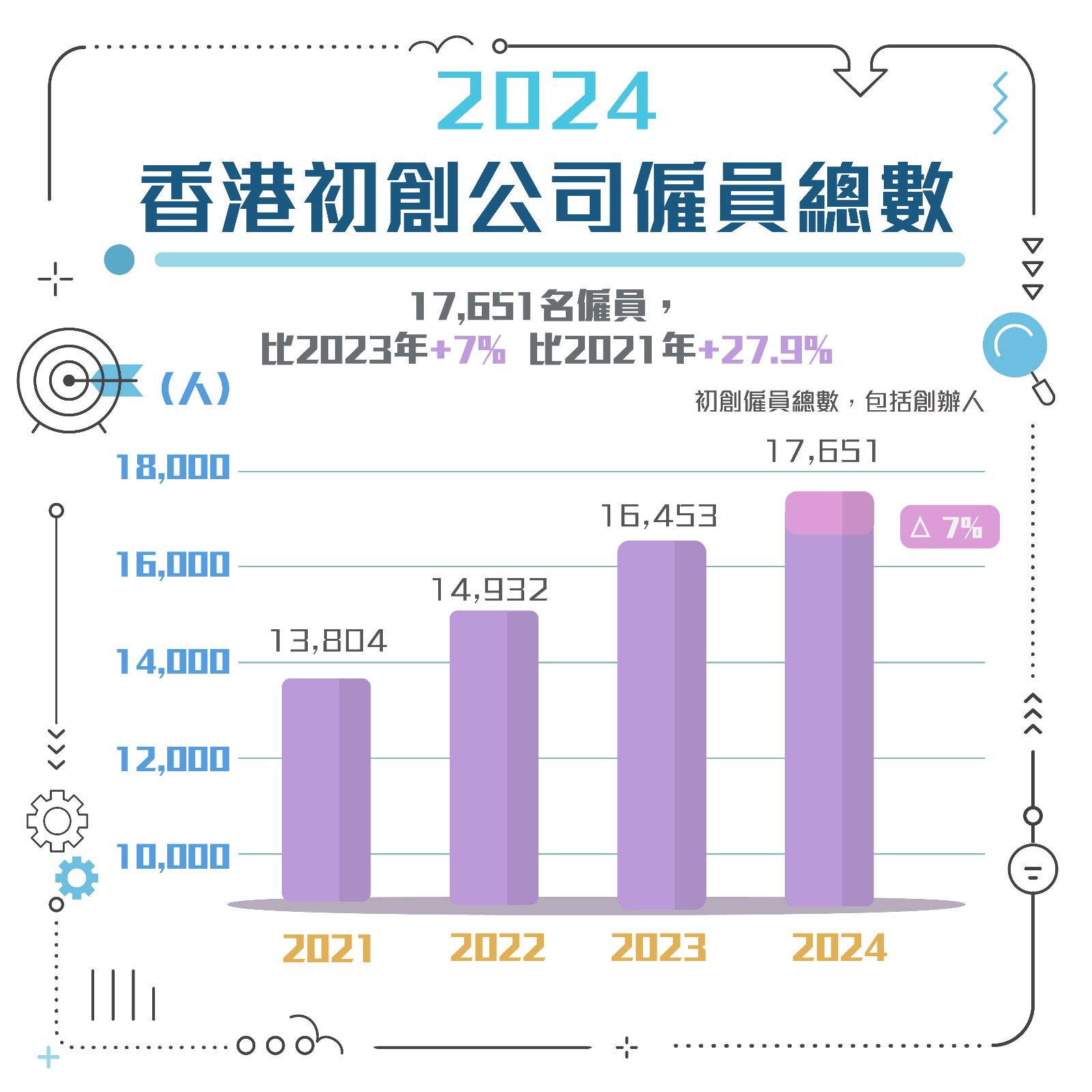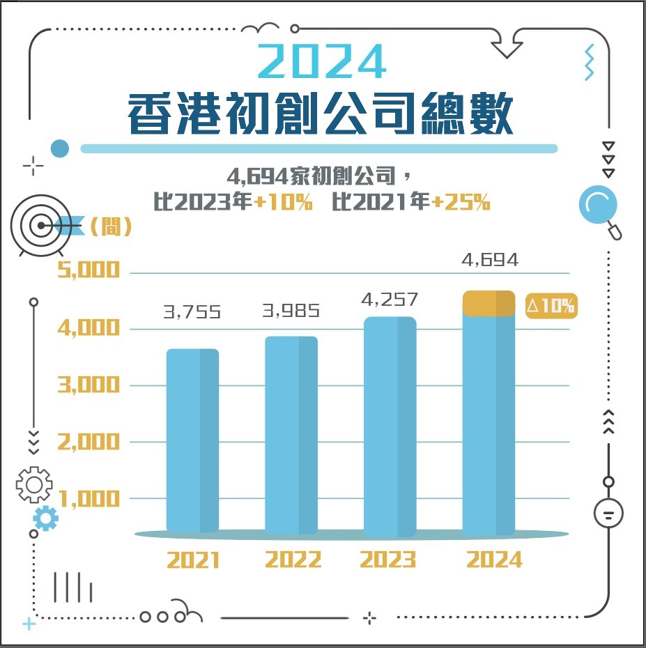 「二零二四年初創企業統計調查」的調查結果顯示,香港的初創企業持續蓬勃發展,數目較去年增加10%至4 694間,創歷史新高。這些初創企業僱用17 651人,較去年增加7%。對比三年前的2021年,初創企業數目上升了25%,其僱用人數亦增加了27.9%。孫東局長表示,這説明本屆政府積極發展初創企業的方針甚有成效,亦反映香港的環境有利初創及創科發展。