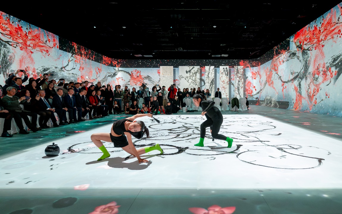 此次展覽,北京畫院運用數字技術為藏品賦能,使齊白石的畫作「活」起來,自2022年開始啟動齊白石藝術數字化工程,耗時一年打造出全球首個齊白石沉浸式數字光影藝術展數字展覽。這與澳門永利皇宮(幻影空間)完美適配,觀眾可以跟隨「白石之眼」,以「行、遊、居」的中式美學思想為線索,走進齊白石筆下獨特的水墨世界,彷彿身臨其境,切身體會這些作品生成的創作環境與故事背景,聆聽、觀看、觸摸和感知藝術家筆下妙趣橫生、拙樸天真的藝術世界,從而更加理解作品背後的動人故事和文化內涵。