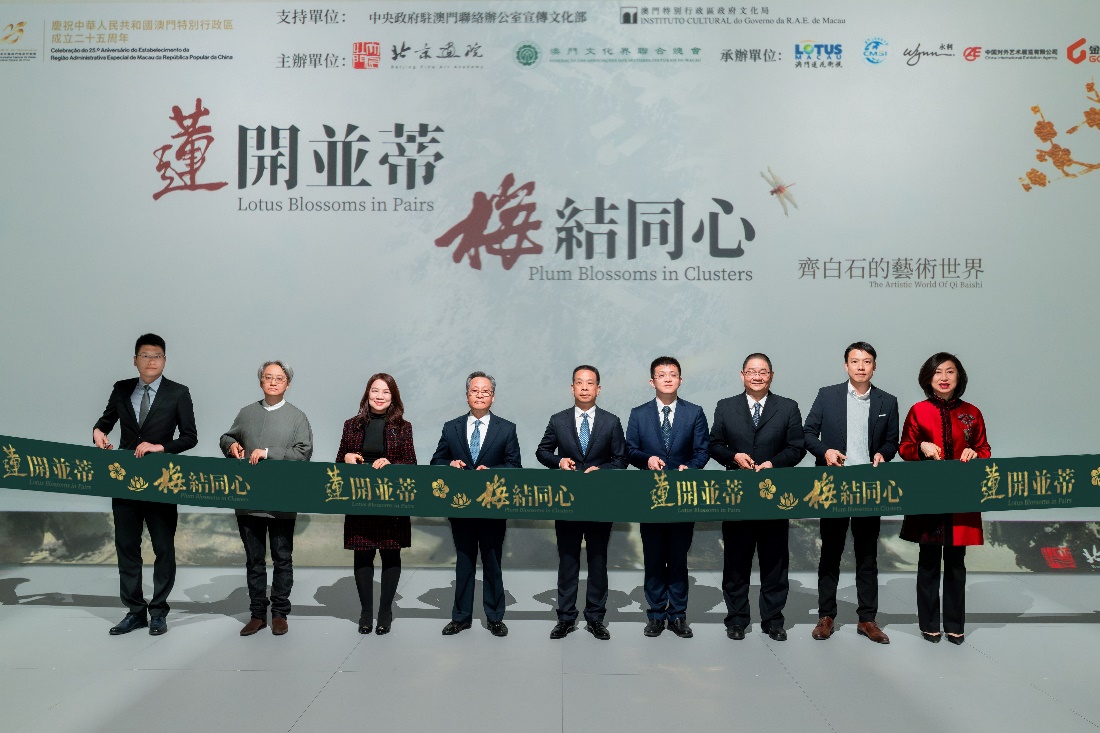 (大公文匯網 記者 郭若溪)近日,為慶祝澳門回歸祖國25周年及齊白石誕辰160周年,《蓮開並蒂 梅結同心—齊白石的藝術世界》展覽在澳門永利皇宮盛大開幕,將持續至2025年2月15日。此次展覽由北京畫院及澳門文化界聯合總會主辦,旨在通過齊白石的數字藝術作品,展現中華文化的深厚底蘊與澳門的獨特魅力,大灣區觀眾不僅可以從作品中體會到齊白石「花開富貴」「花好年豐」的美好祝福,同時,還將在數字化的展廳空間感受齊白石對「一花一世界」的生命哲思。
