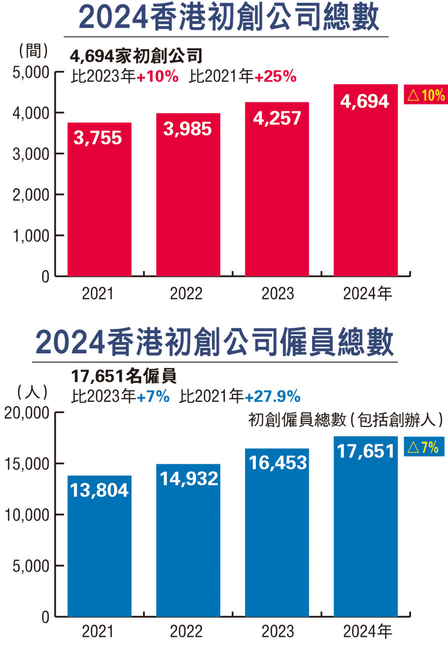 第二,投資推廣署的2024年初創企業統計調查顯示,今年香港初創企業數目亦創歷史新高,接近4,700間,按年增加約10%,僱用人員近18,000人,按年增加7%。數字反映特區政府近年各項政策,為初創生態圈提供理想和吸引的營商環境。