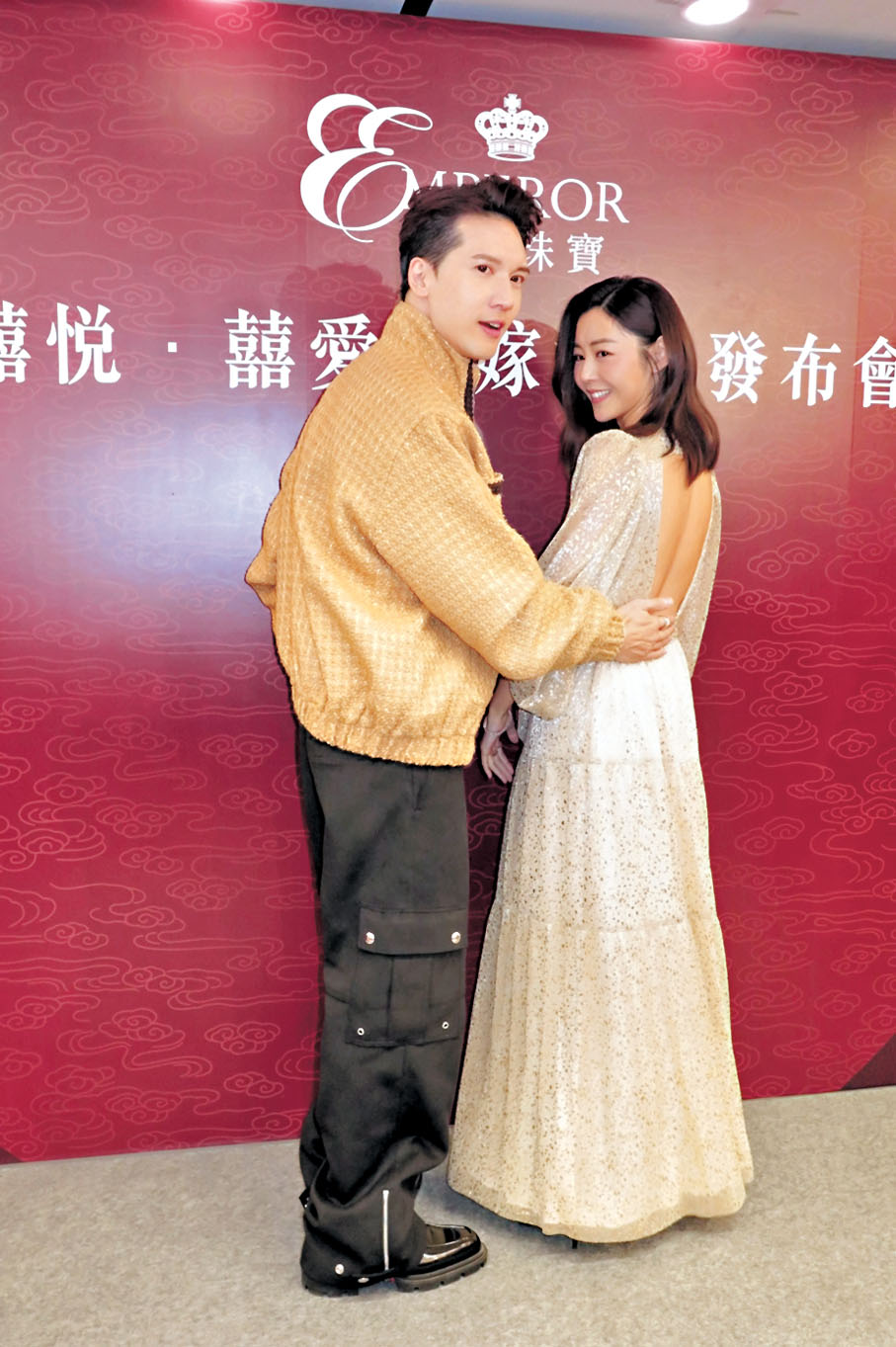 (香港文匯報記者 阿祖)衛詩雅(Michelle)與關智斌(Kenny)昨日出席婚嫁活動,Michelle剛榮登亞太影展影后,昨日她戴上鑽石頸鏈、手鏈及三隻大鑽戒閃爆登場,Kenny要求她騷玉背拍照再做「影后」,Michelle笑答:「我係演員。」Michelle因《破·地獄》帶挈身價跳升,自爆昨早跟未婚夫去入紙申請註冊結婚,她笑言過程頗驚險,因迷路遲到,一直擔心會被取消申請,未婚夫宣讀誓詞時差點就哭出來,笑稱希望出嫁時當「人形金條」。