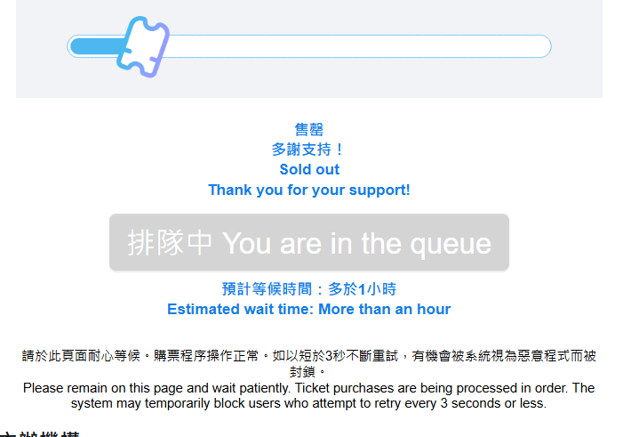 大公文匯全媒體報道,「亞洲流行天王」周杰倫早前宣布,將於明年6月在香港啟德體育園一連三日舉行《嘉年華世界巡迴演唱會》。演出門票今日(18日)上午10時起開展指定銀行信用卡優先搶票,掀起撲飛盛況。不少網民反饋,網站一直顯示「排隊中」,預計輪候時間超過1小時,開售約半小時後便「只剩餘少量門票」。中午12時許,網站顯示所有價位門票已經售罄。