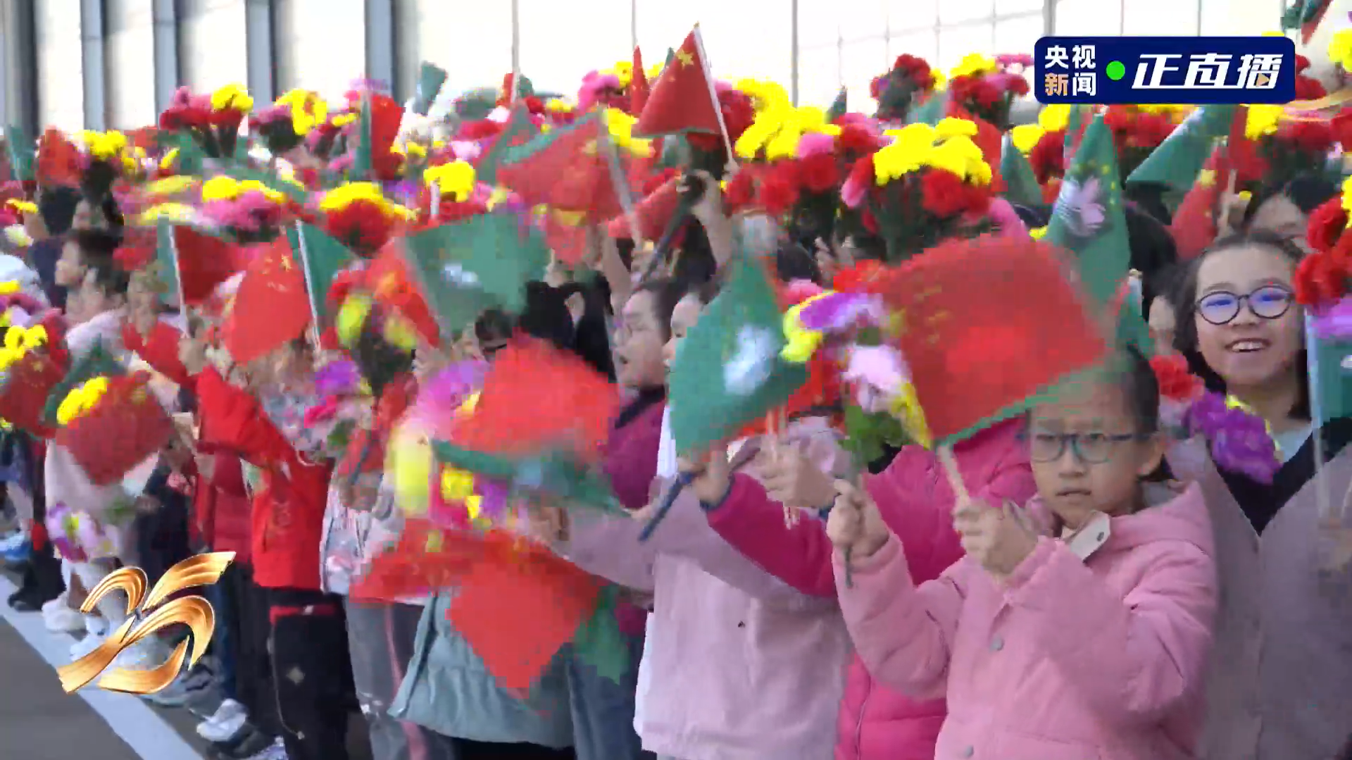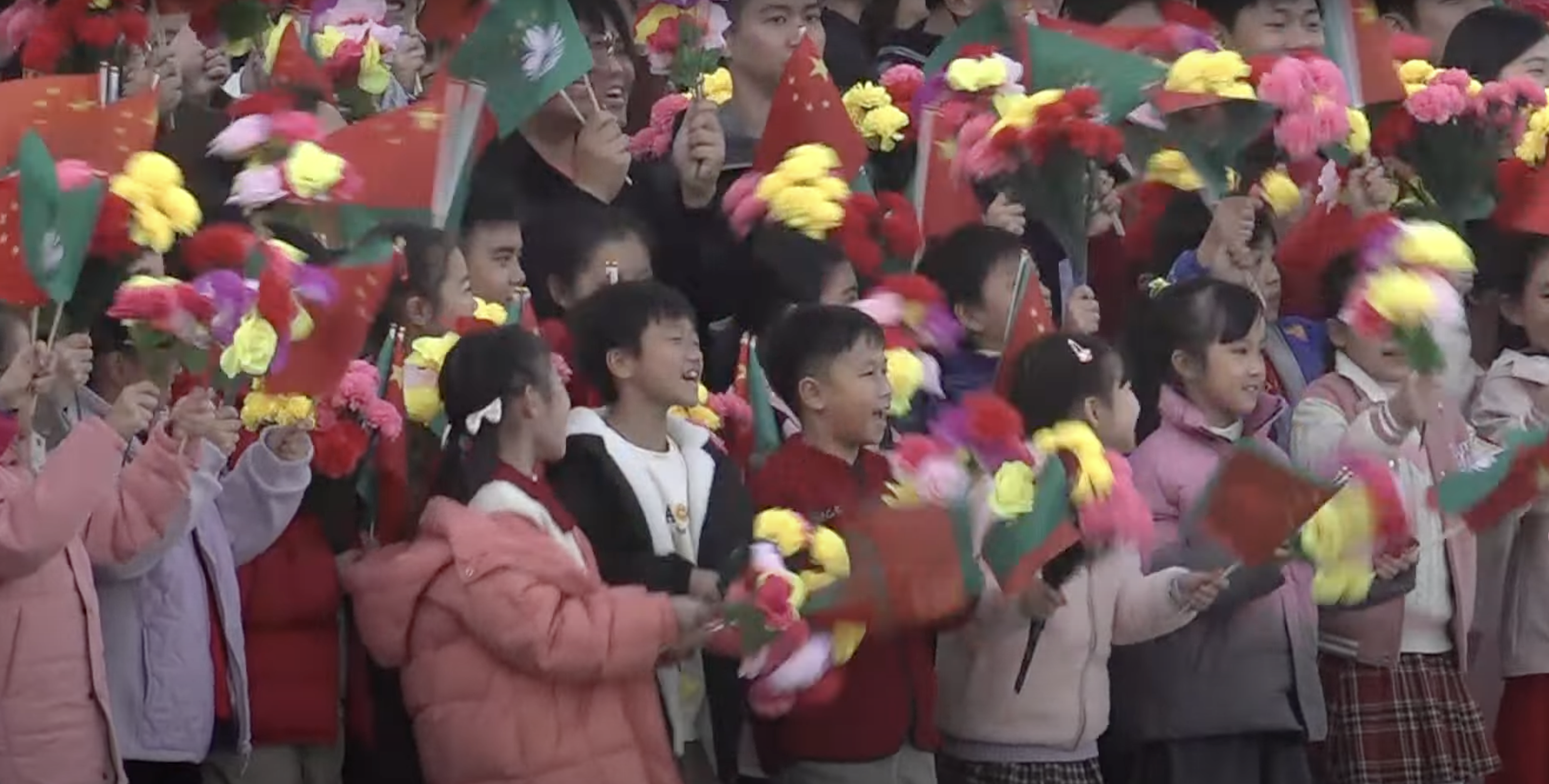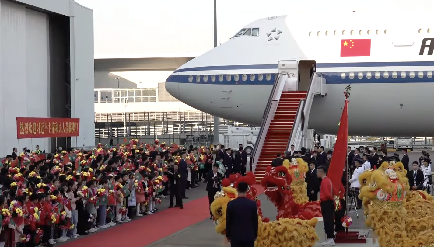 下午4時許,習近平主席乘坐的專機抵達澳門國際機場。澳門各界群眾代表揮動國旗、特別行政區區旗和鮮花,表達熱烈的歡迎。