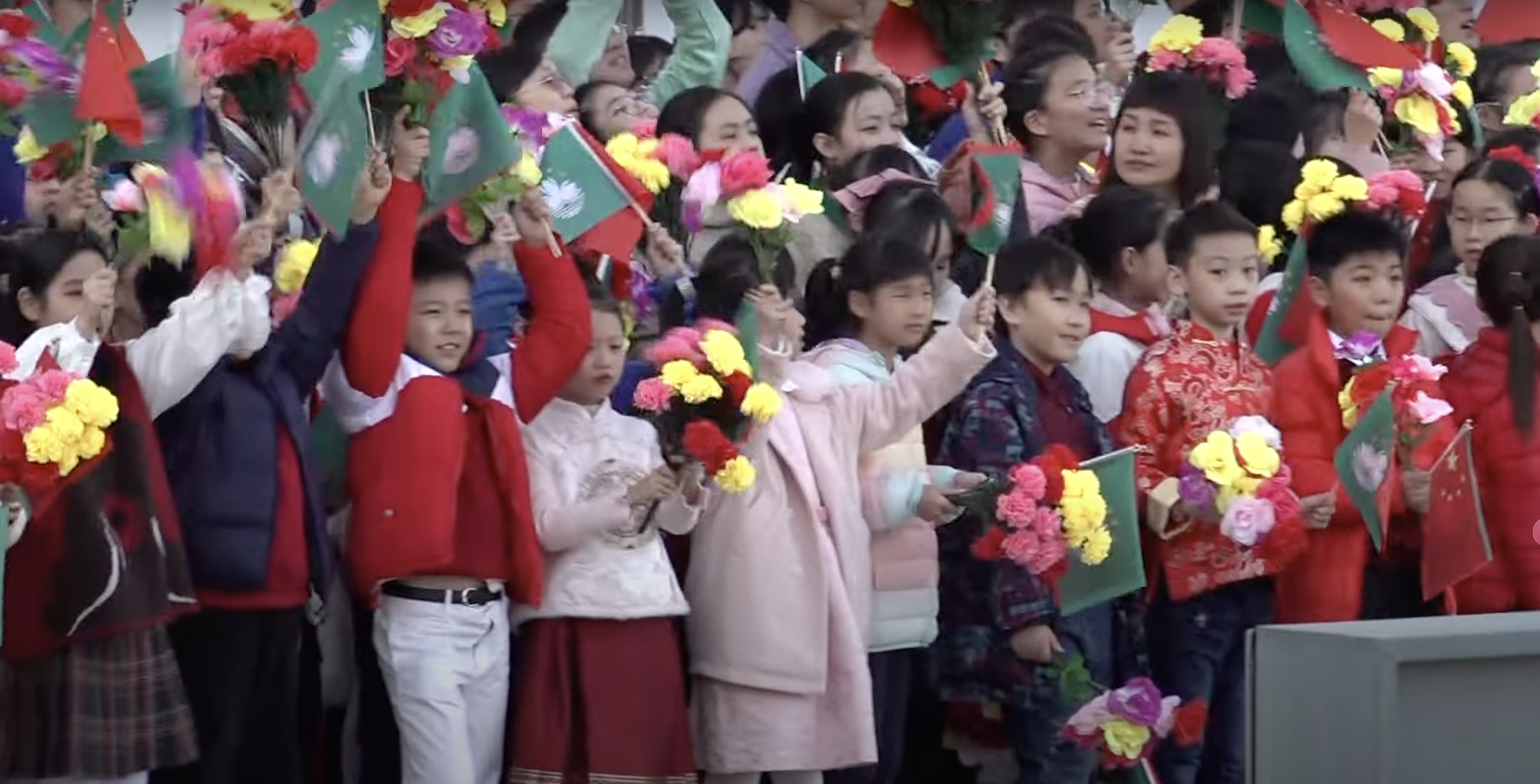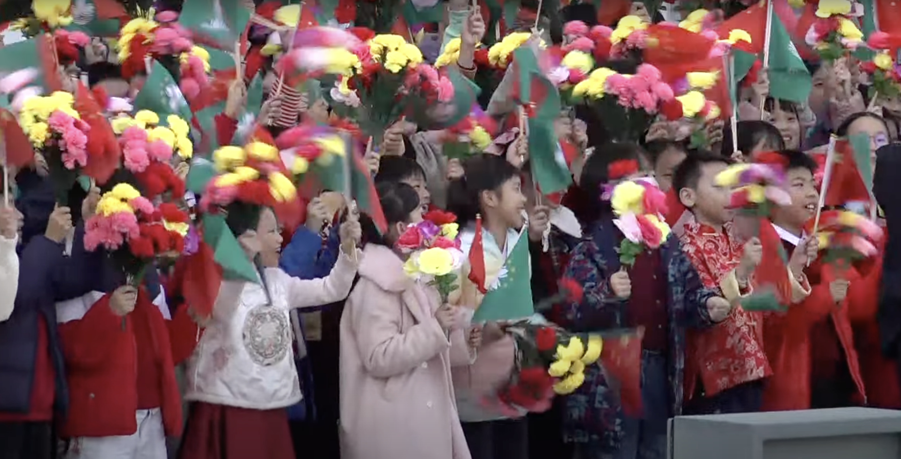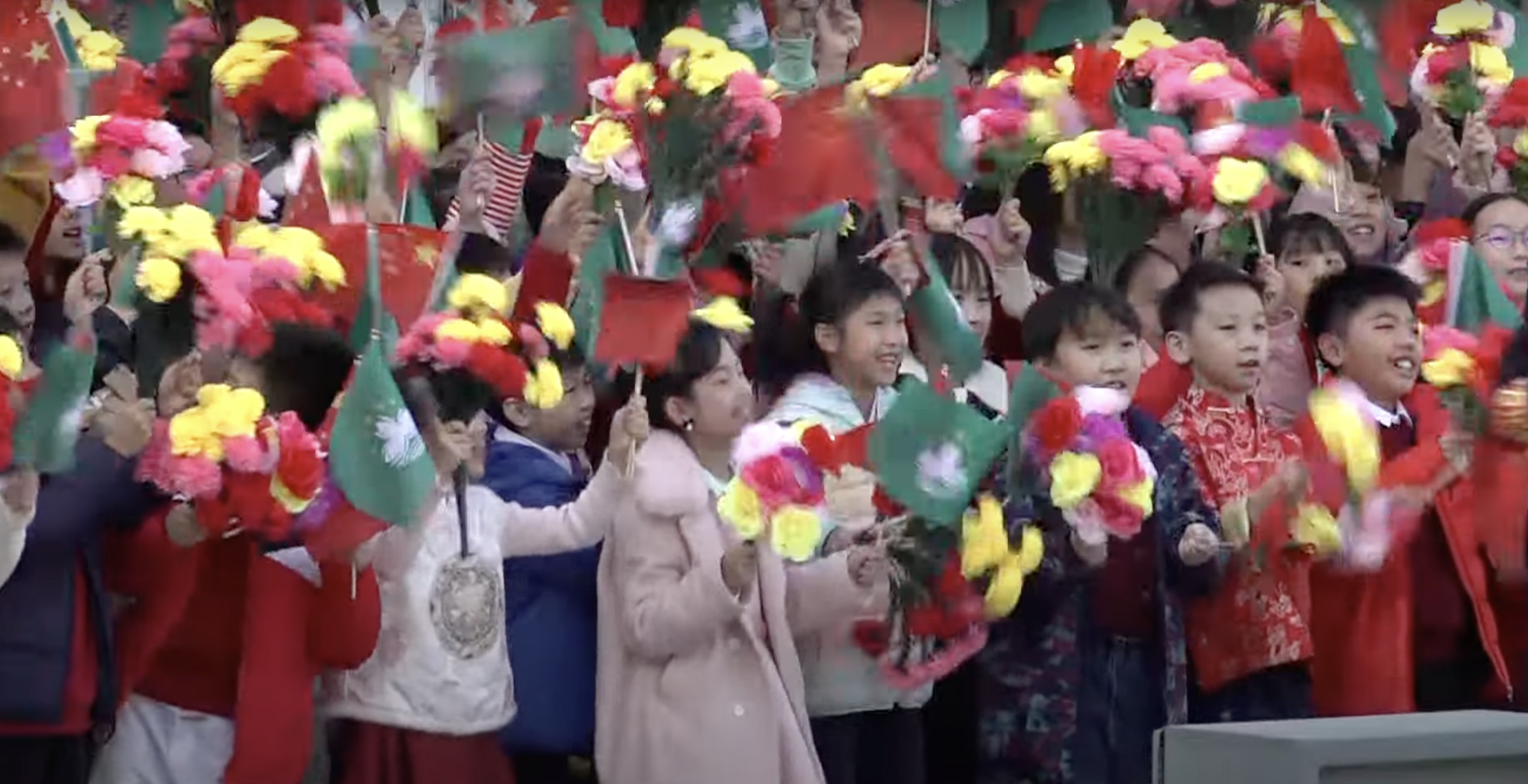 下午4時許,習近平主席乘坐的專機抵達澳門國際機場。澳門各界群眾代表揮動國旗、特別行政區區旗和鮮花,表達熱烈的歡迎。