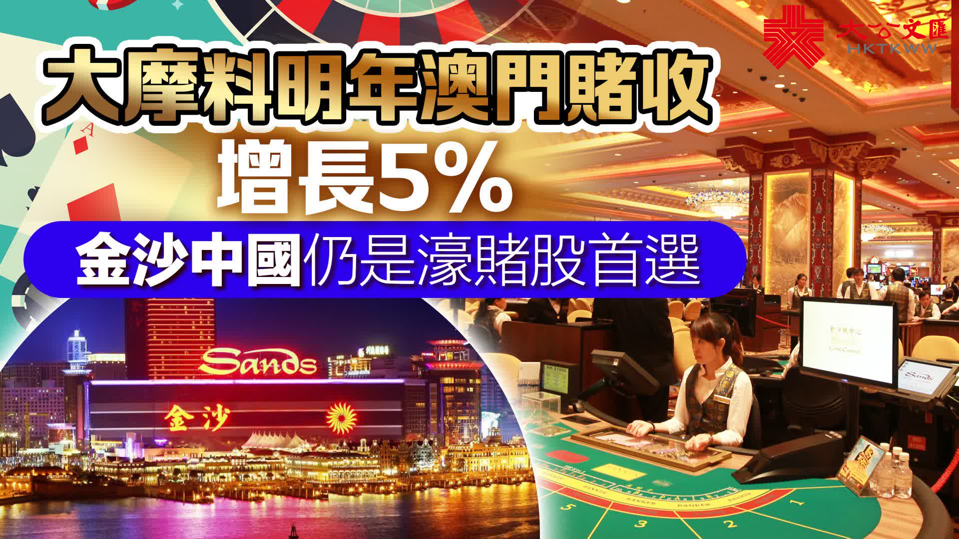 個別濠賭股方面,大摩指,金沙中國(01928)、銀河娛樂(00027)及澳博(00880)明年市場佔有率料會上升。相反,美高梅中國(02282)、永利澳門(01128)及新濠博亞(MLCO.US)的市佔率則會減少。