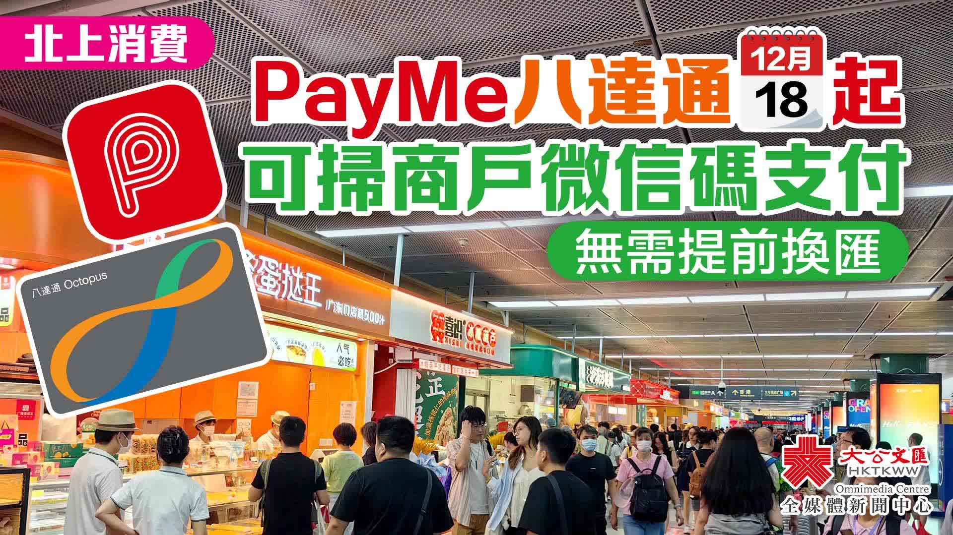 大公文匯全媒體報道,港人北上消費再添便利!即日(18日)起,包括八達通及PayMe在內的4個支付平台支持APP內掃商家微信收款碼付款,直接以港幣付款,無需提前換匯或安裝微信APP。