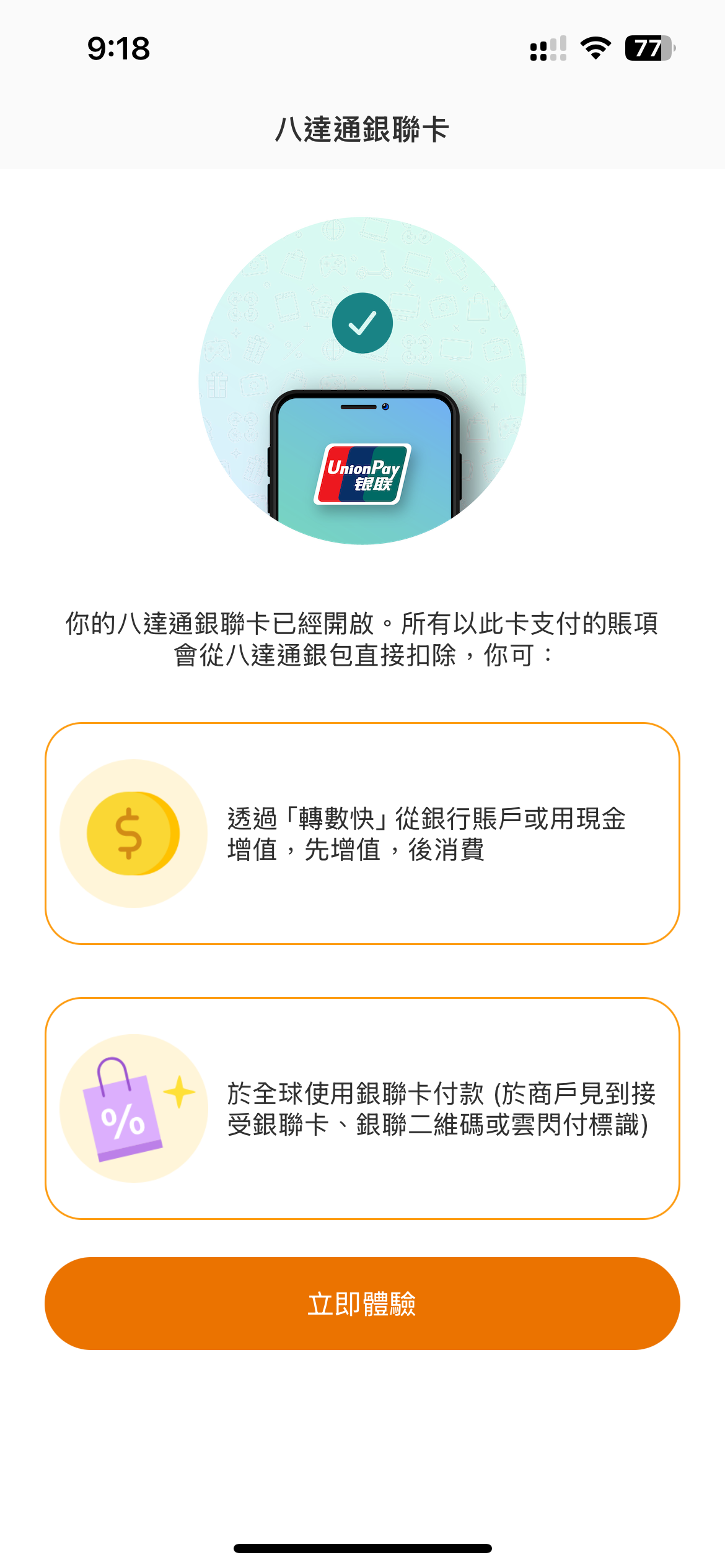 以八達通為例,只要商戶有可接受銀聯或雲閃付二維碼支付標識,即可打開APP使用八達通銀聯卡消費,一掃即付!之後,用戶可在銀包頁面找到手機版銀聯卡。滙豐的PayMe由即日起亦可掃碼付款,用戶只需以類似流程在APP內開通銀聯卡,即可付款。
