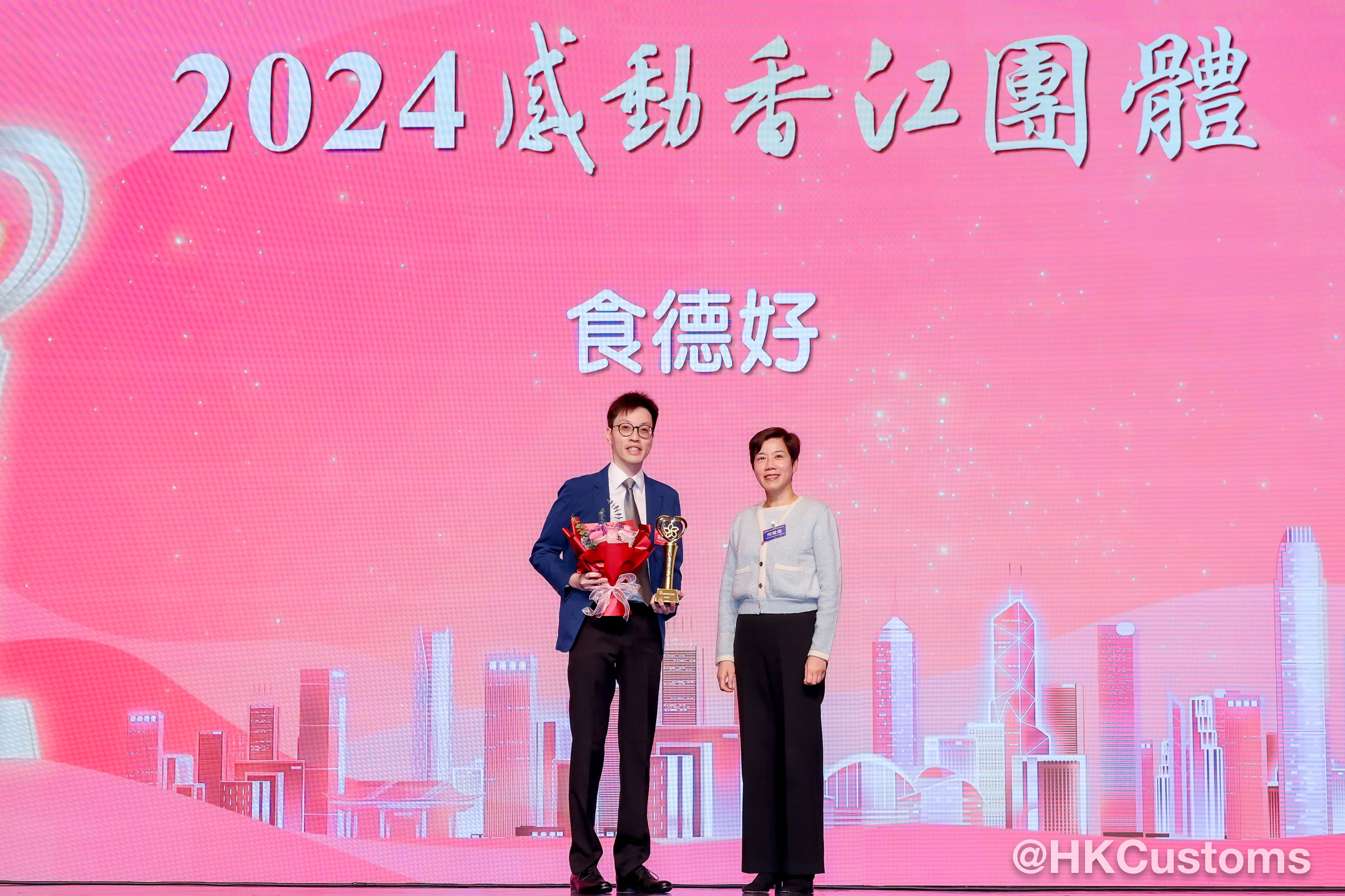 香港紀律部隊義工服務隊(海關)利用公餘時間奉獻予有需要人士,實在值得嘉許。典禮中,何珮珊頒發「感動香江團體獎」予「食德好」,以表彰他們致力宣揚食物回收、創造綠色工作機會和減輕基層的經濟負擔方面的努力。香港海關將繼續支持義工服務活動,並攜手各界共建關愛社會,讓社會充滿更多正能量。