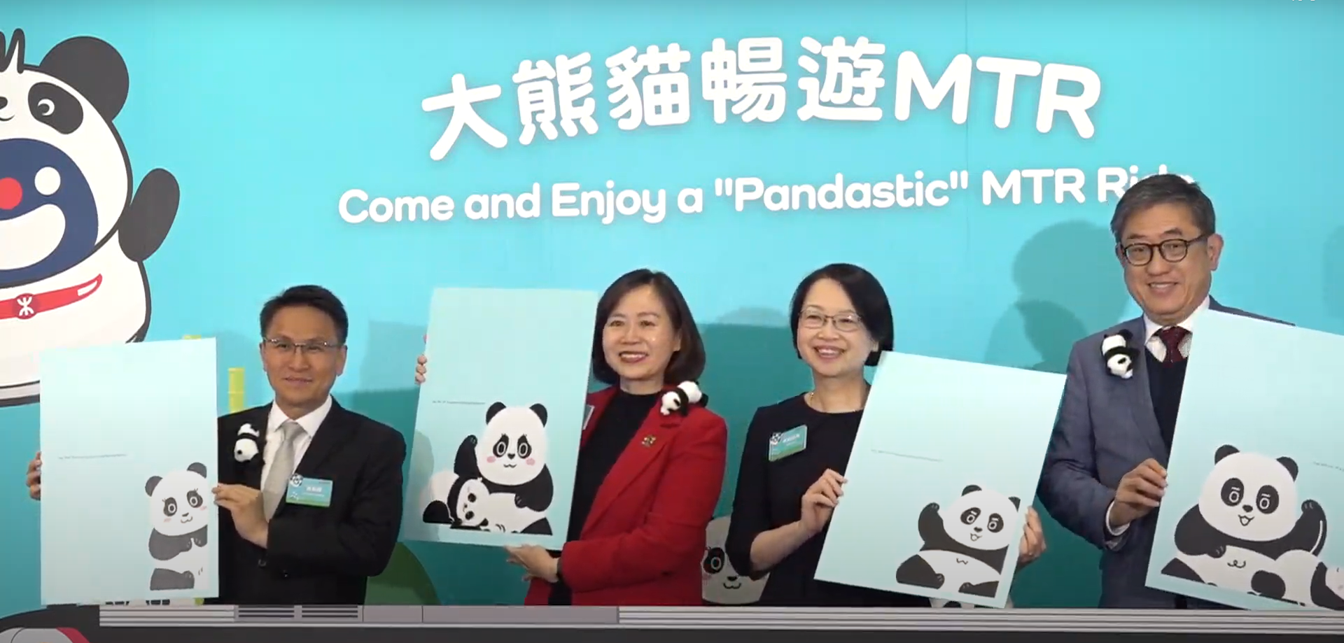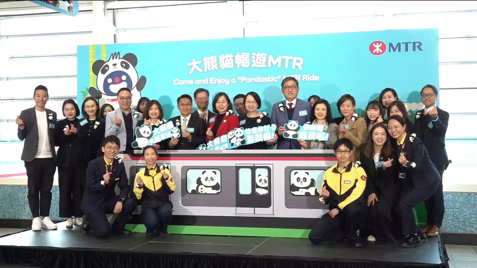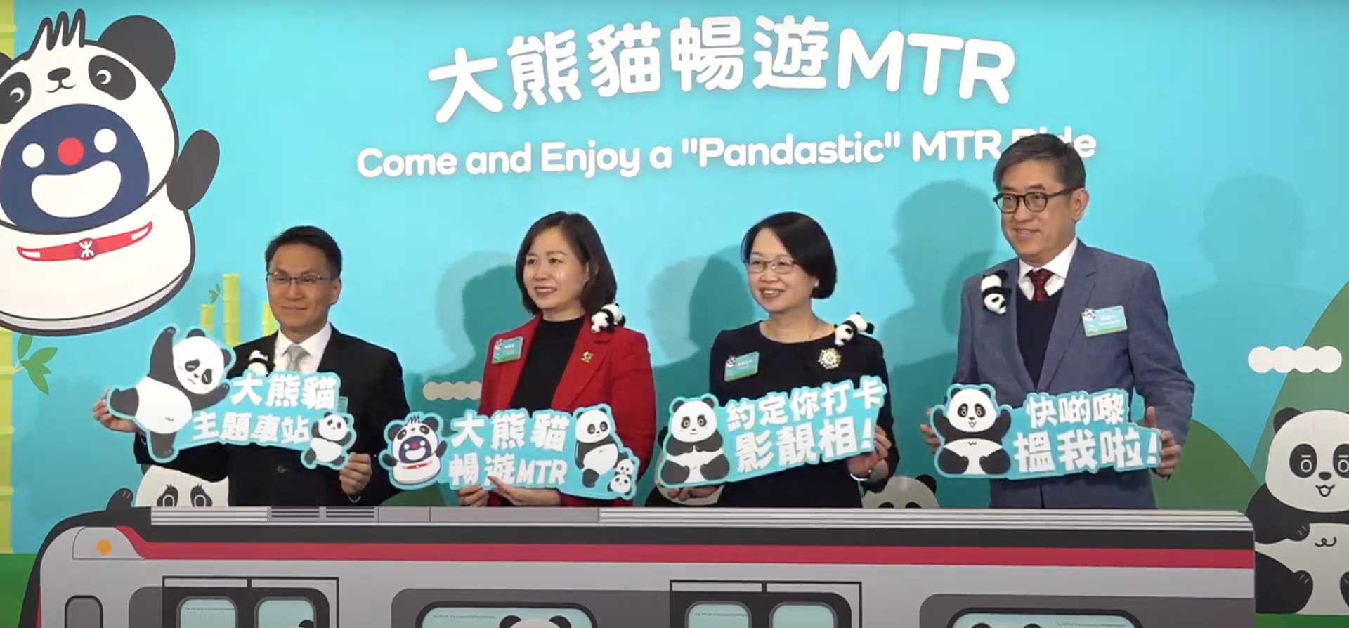 楊美珍表示,港鐵即日起推出三列大熊貓主題列車,將運行至明年初。其中兩列將行走於海洋公園站所在的南港島綫,另外一列則是機場快綫列車。