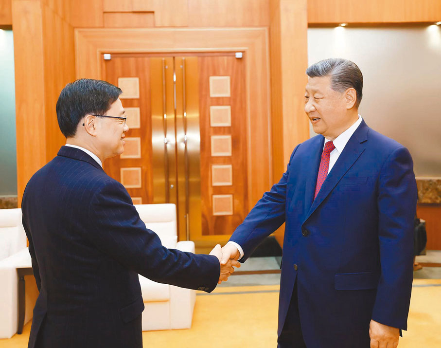 李家超感謝習近平主席的接見,表示將努力帶領香港拚經濟、謀發展,切實改善民生,積極參與粵港澳大灣區建設,更好融入國家發展大局。