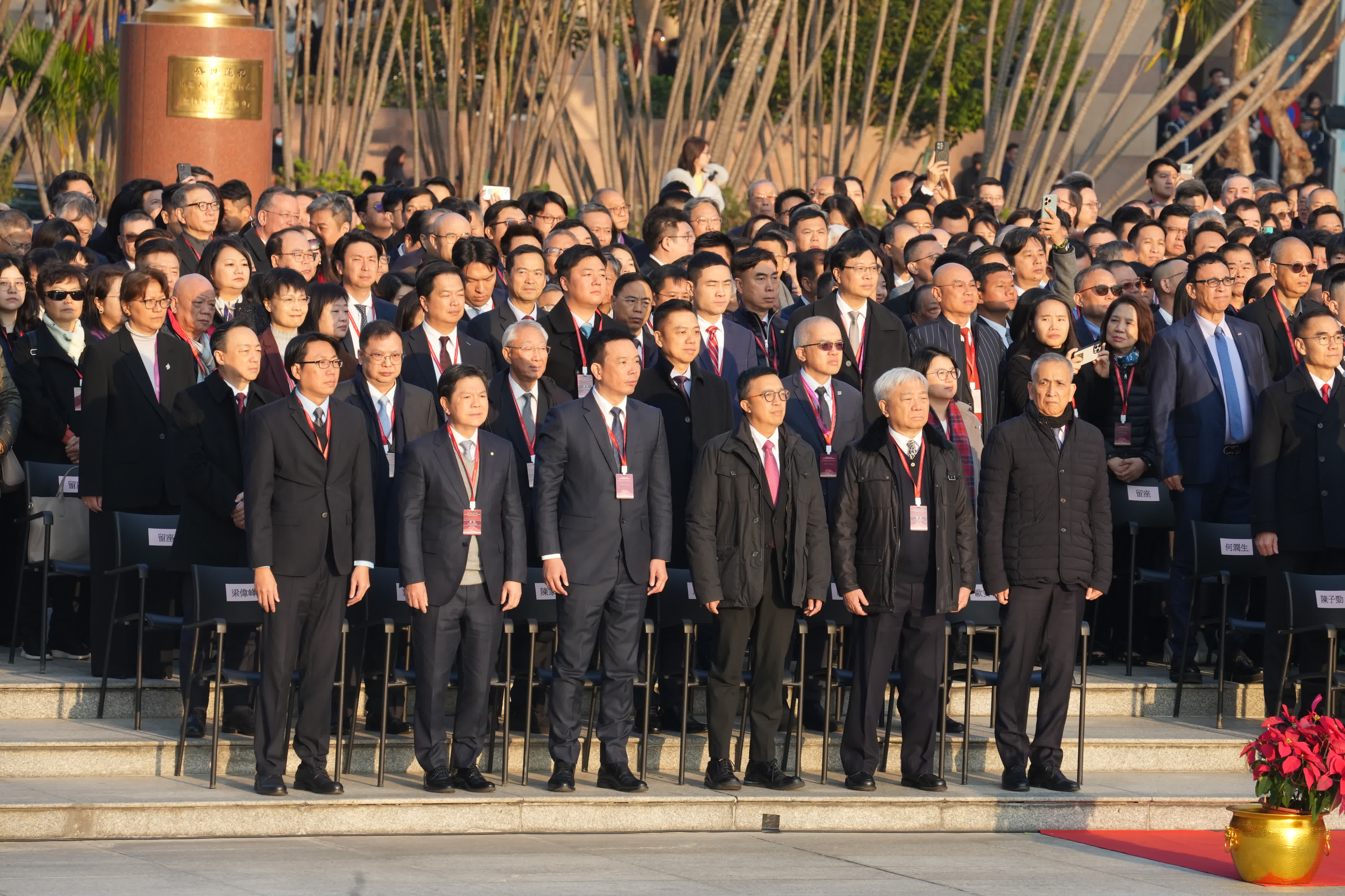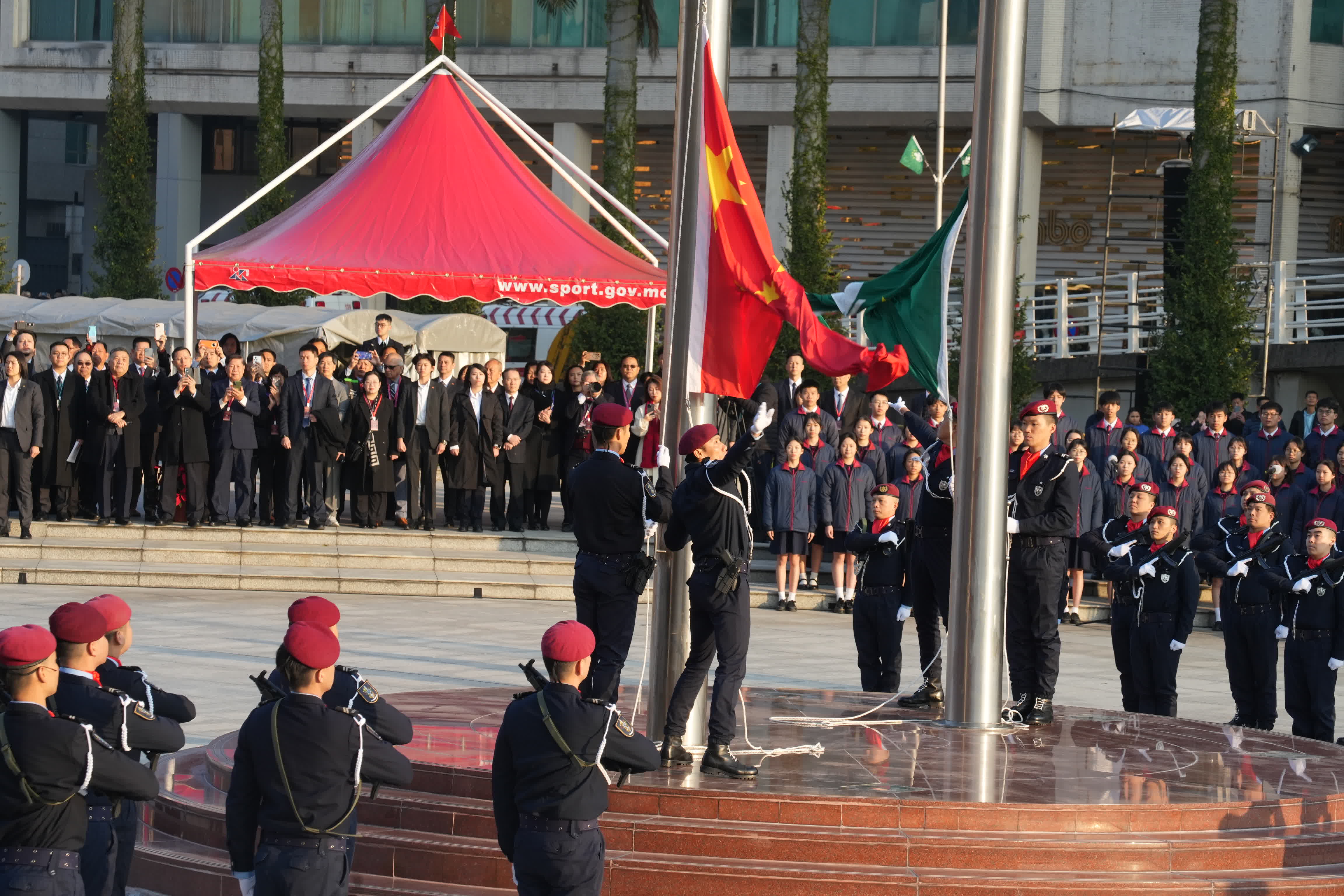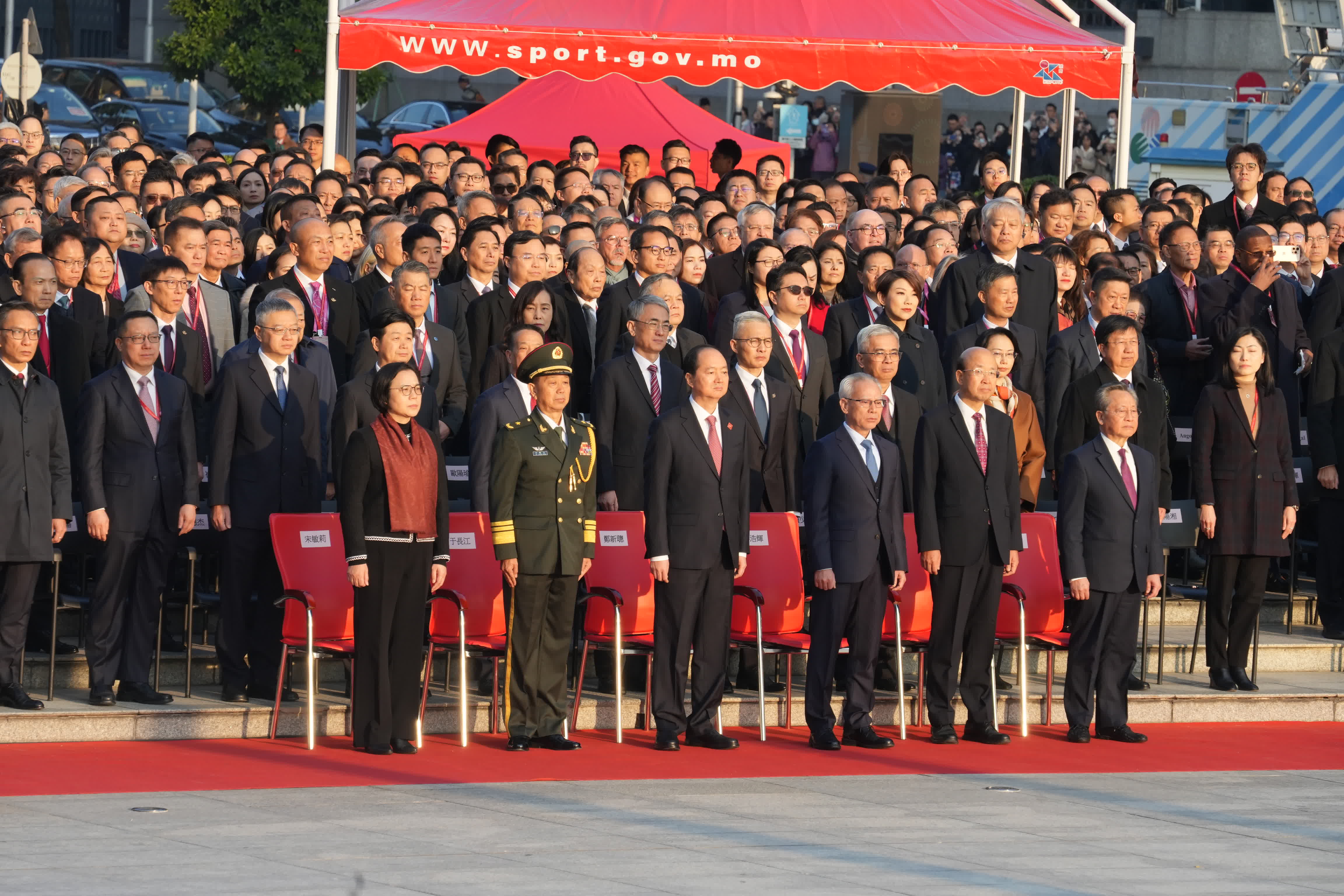 澳門第六任行政長官岑浩輝、澳門現任行政、立法、司法機構負責人出席升旗禮。中央政府駐澳門聯絡辦公室主任鄭新聰,外交部駐澳門特派員公署特派員劉顯法,中國人民解放軍駐澳門部隊司令員于長江等中央駐澳機構負責人亦有到場,見證歷史時刻。隨後,由海關、消防局等部門組成的儀仗隊向各嘉賓致敬。