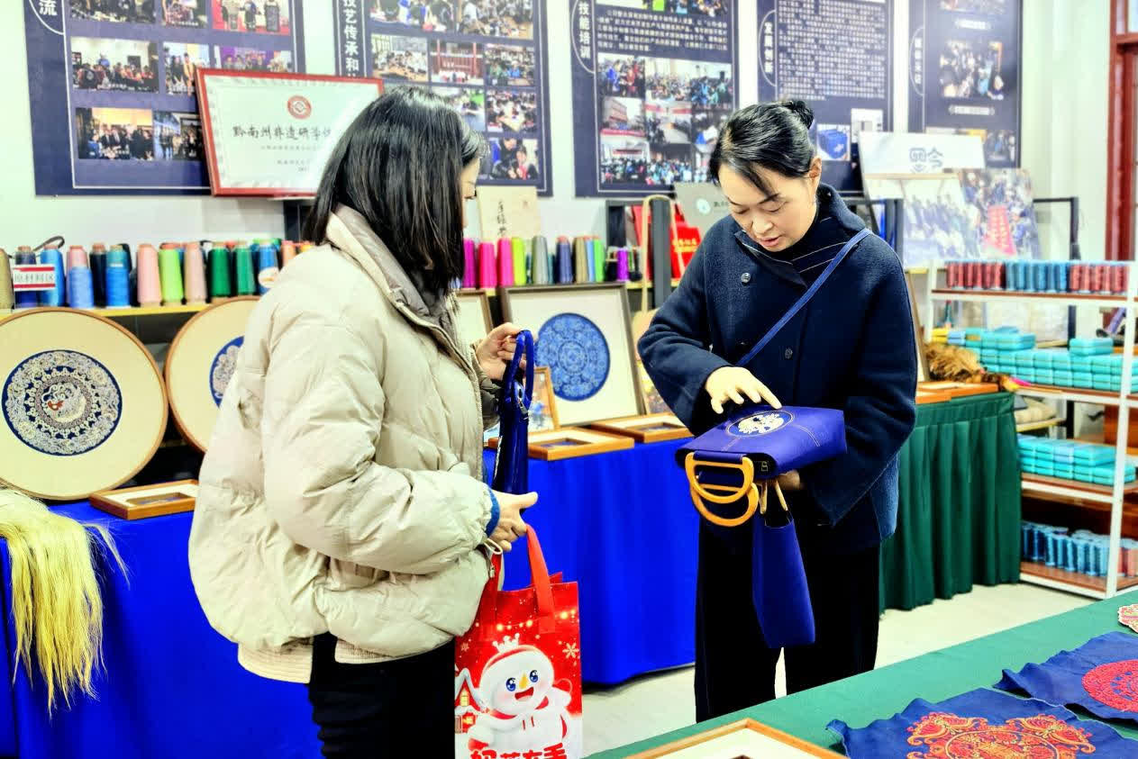 貴州省三都水族自治縣的馬尾綉商業開發也為當地社區帶來了經濟收益,推動了水族地區的鄉村振興與可持續發展。在三都水族自治縣水族非遺一條街的馬尾綉傳承保護中心和貴陽市青雲路集市的水仙馬尾綉非遺商品店裏,琳琅滿目地擺放着用馬尾綉製作而成的掛件、擺件、手包等飾品,工作人員介紹,在傳統馬尾綉工藝基礎上進行了創新設計,推出了馬尾綉文創產品,既保留了馬尾繡的傳統元素,又兼具實用功能,深受遊客的喜愛。不時便有遊客進店選購。
