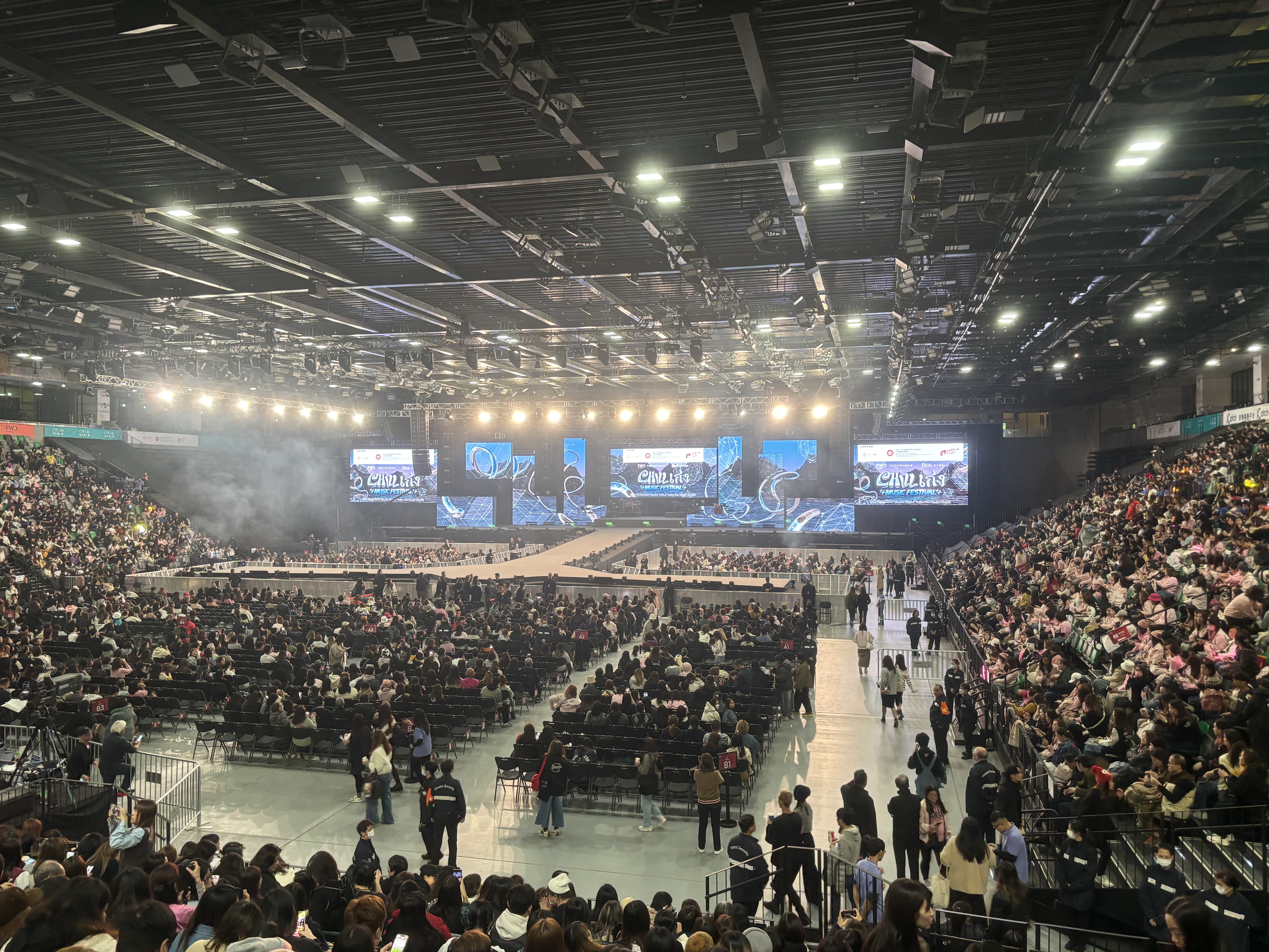 表演場地內部為長方形,設施完備,中央部分設有大型「工」字舞台、三面電子屏與全覆蓋燈光音響設備。靠近舞台的內場區域十分廣闊,分為三部分,每部分中有較大間隔,可容納大量觀眾近距離欣賞表演。表演尚未開始,有觀眾便已擺出燈牌,與現場其他歌迷影相留念。