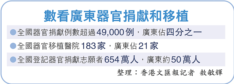 雖然中國器官捐獻和移植晚於西方國家,但近10多年取得明顯成效。數據顯示,截至2023年底,中國累計器官捐獻志願登記者超過650萬人,器官捐獻例數近5萬例,捐獻器官超過15萬個,中國已成為世界器官捐獻和移植第二大國。其中,廣東器官捐獻量約佔全國四分之一,連續13年位居全國第一。
