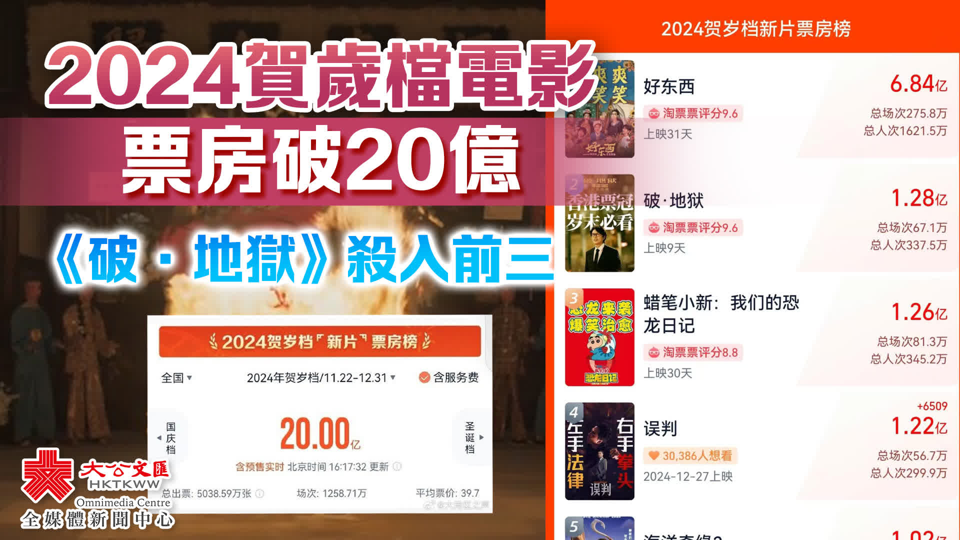 2024年內地賀歲檔電影票房破20億 《破·地獄》第二