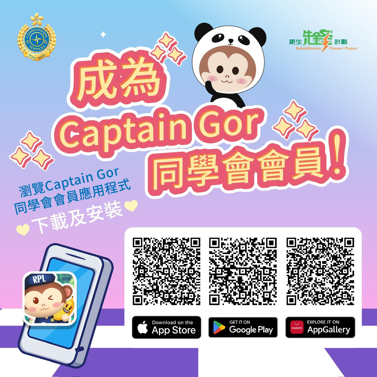 貫徹懲教署「青年為本、預防為先」的社區教育方針,「更生先鋒計劃」今日正式推出「Captain Gor同學會」及手機應用程式,為「更生先鋒計劃」建立會員制度,並公開招募中小學生成為非制服團體會員,培育他們成為愛護家國、具正向思維的新一代。