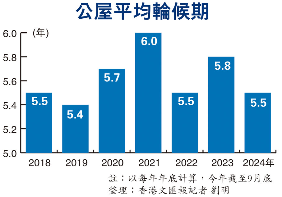 解決住屋問題的關鍵始終是公屋單位提速、提量,特區政府經過多番努力,目前已覓得足夠土地提供公營房屋單位以完全滿足長遠需求,連同簡約公屋在內,未來五年總體公營房屋供應量將達175,000伙,較本屆政府上任時的5年期,增加約80%。過去兩年,公屋平均輪候時間下降了約半年,由高峰6.1年,下降至今年9月的5.5年。