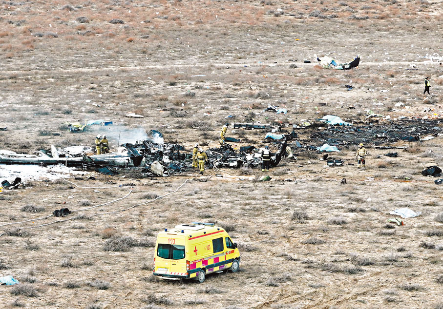 香港文匯報綜合報道,昨日下午約3時,俄媒援引哈薩克斯坦緊急情報部消息,一架從阿塞拜疆飛往俄羅斯的阿塞拜疆航空公司客機,於聖誕節(12月25日)當天在哈薩克斯坦西部城市阿克套附近墜毀,機上載有62名乘客和5名機組人員。昨深夜,哈薩克斯坦緊急情報部確認,事件中有38人喪生,29人奇跡生還。中國駐阿克托別總領事館表示,墜機事故不涉及中國乘客,阿塞拜疆航空官方公布的名單上也沒有中國公民。俄羅斯航空監管機構發聲明稱,初步資訊顯示,機師是在飛機遭鳥群撞擊後,決定緊急降落。