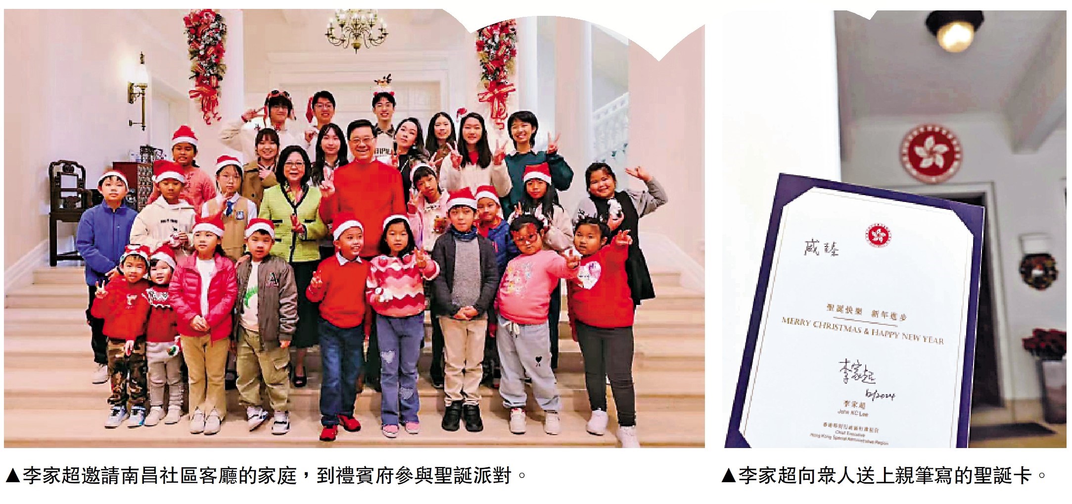 (大公報記者 義昊)行政長官李家超早前邀請南昌社區客廳的家庭,到禮賓府參與聖誕派對,分享佳節喜悅。