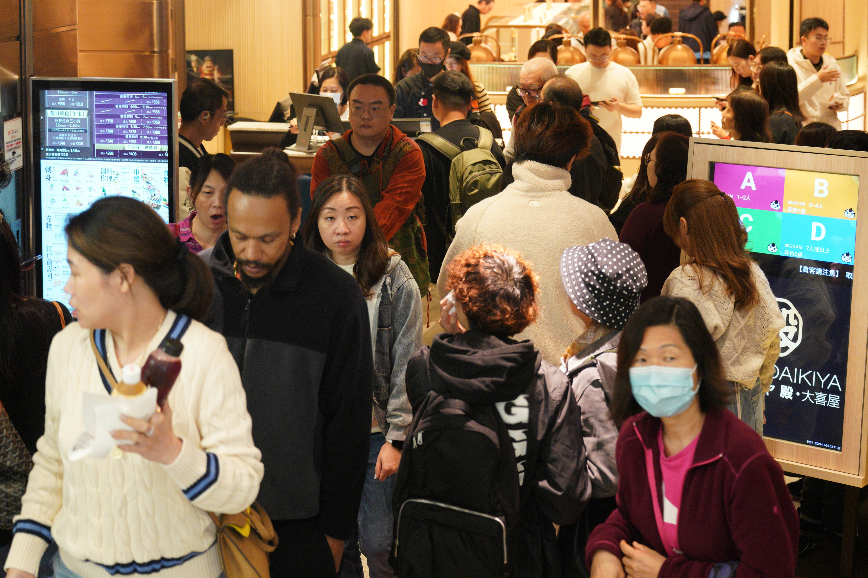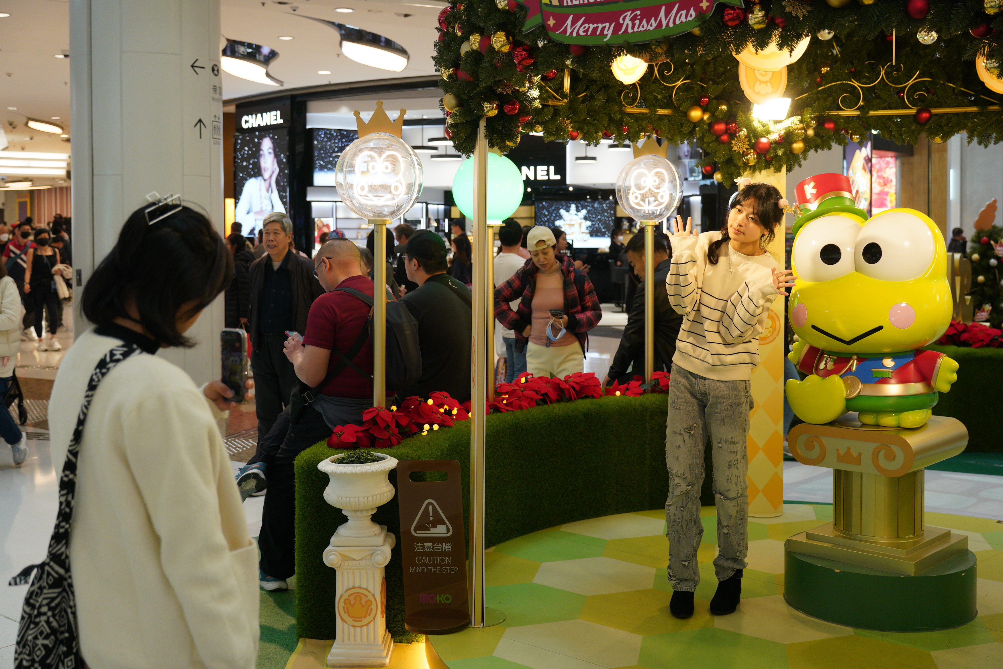 大公文匯全媒體報道,今日(26日)是聖誕節翌日,本港仍沉浸於濃濃節日氛圍,市道興旺。記者發現大部分商場迎來大量客流,許多市民及遊客與商場的聖誕裝飾合影,且許多食肆已排起長隊。