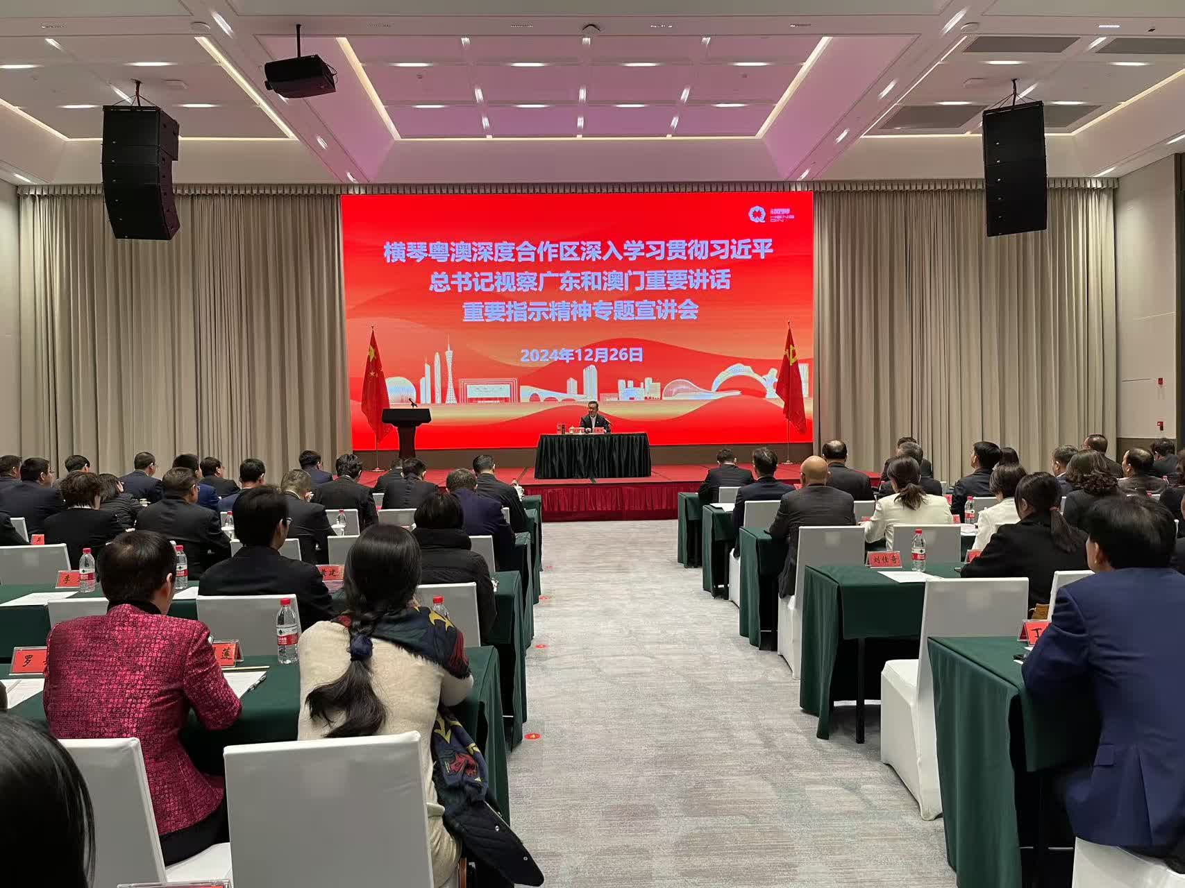 宣講會以組織觀看專題視頻、聽取代表分享、作宣講報告等形式,傳達學習貫徹習近平總書記視察廣東和澳門重要講話、重要指示精神以及省委常委會會議、全省幹部大會精神,深入學習領會總書記對橫琴開發建設的重要要求、對新階段「一國兩制」事業的政治考量,號召把總書記重要講話重要指示精神貫穿到橫琴發展上來,攜手澳門推動合作區第二階段工作取得更大成效。