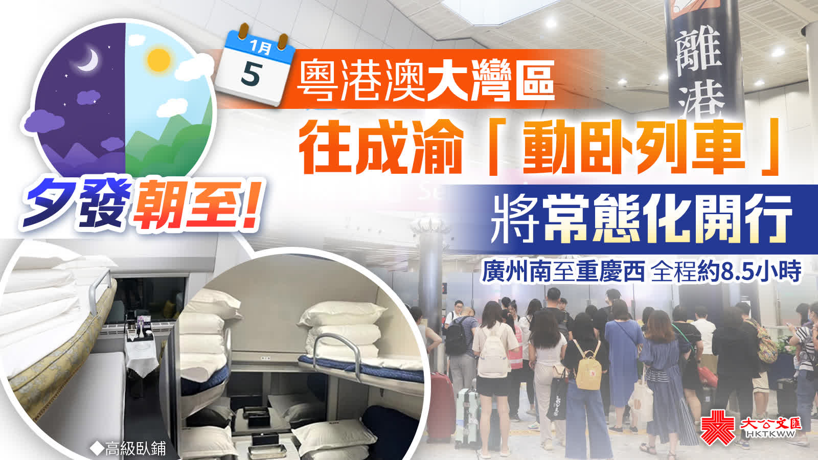 (大公報記者 方俊明 廣州報道)港人從灣區往成都、重慶等西南地區將更加便捷!記者26日從廣鐵集團獲悉,2025年1月5日零時起,全國將實行新的旅客列車運行圖,粵港澳大灣區往成渝方向列車將升級「G字頭」動車組,還將增開「動卧列車」,屆時粵港澳大灣區往成渝方向動車組列車將達35列,與今年初相比增加5列,增幅達16.7%,進一步密切西南與華南地區的往來交流,推動粵港澳大灣區和成渝地區雙城經濟圈的高質量發展。