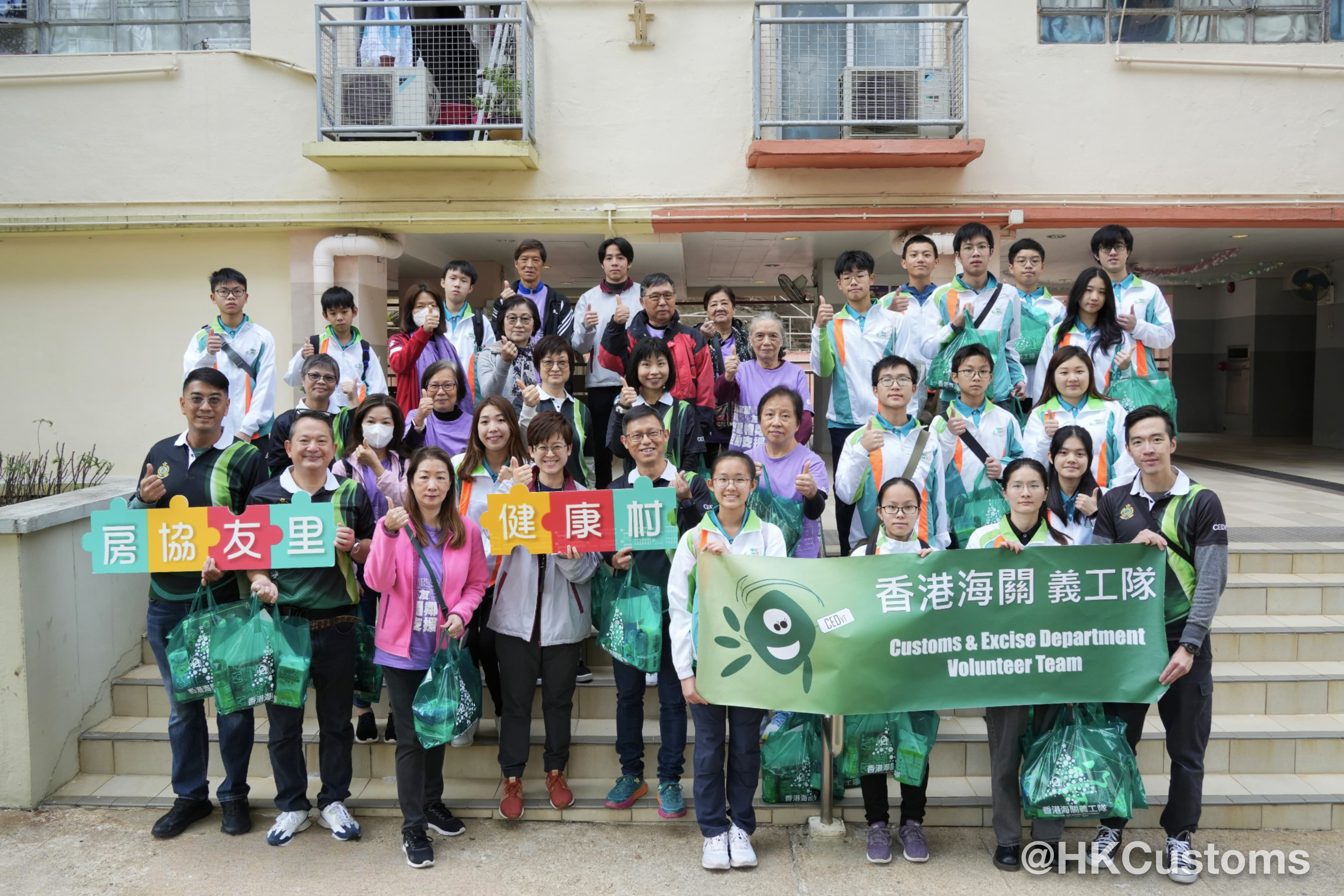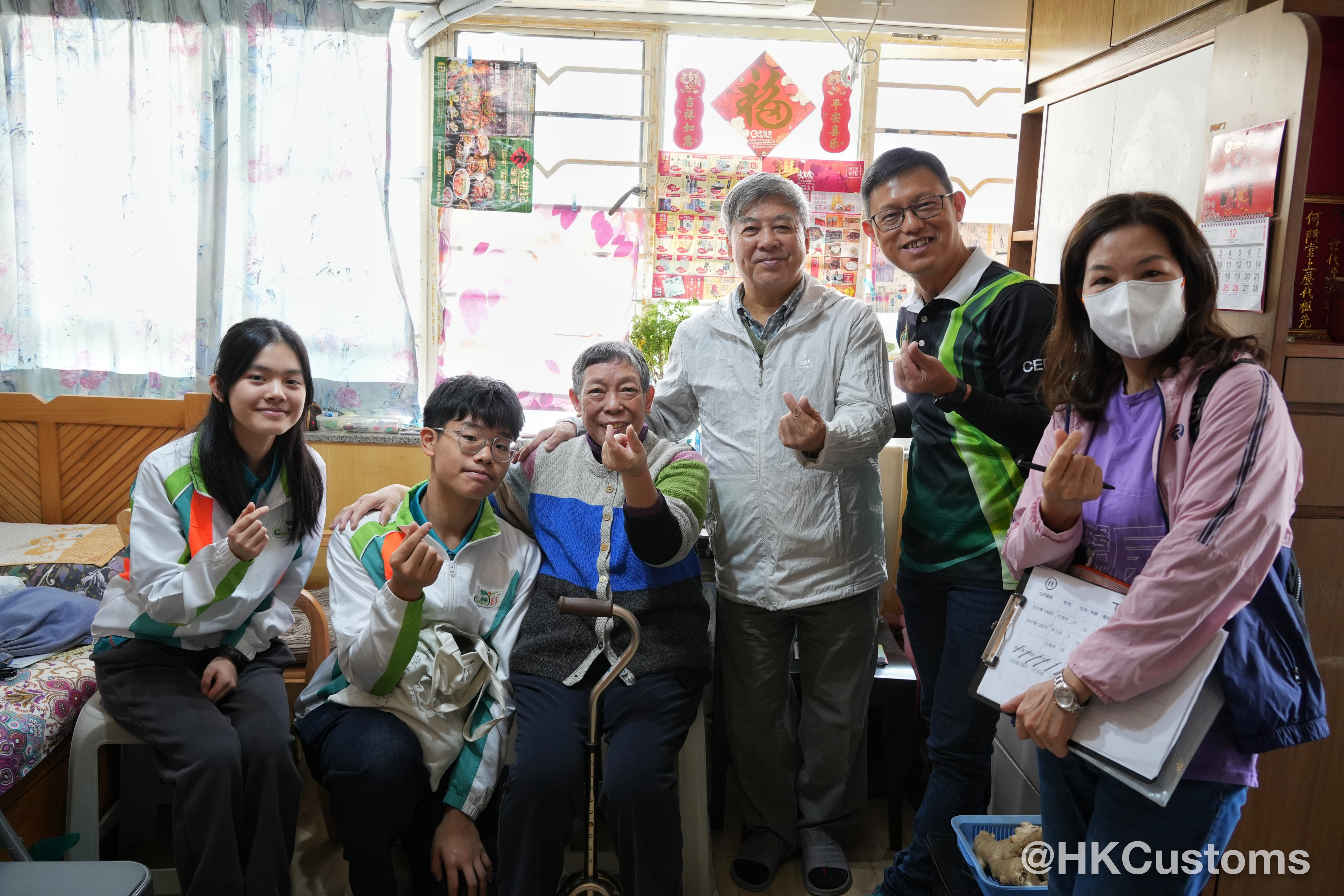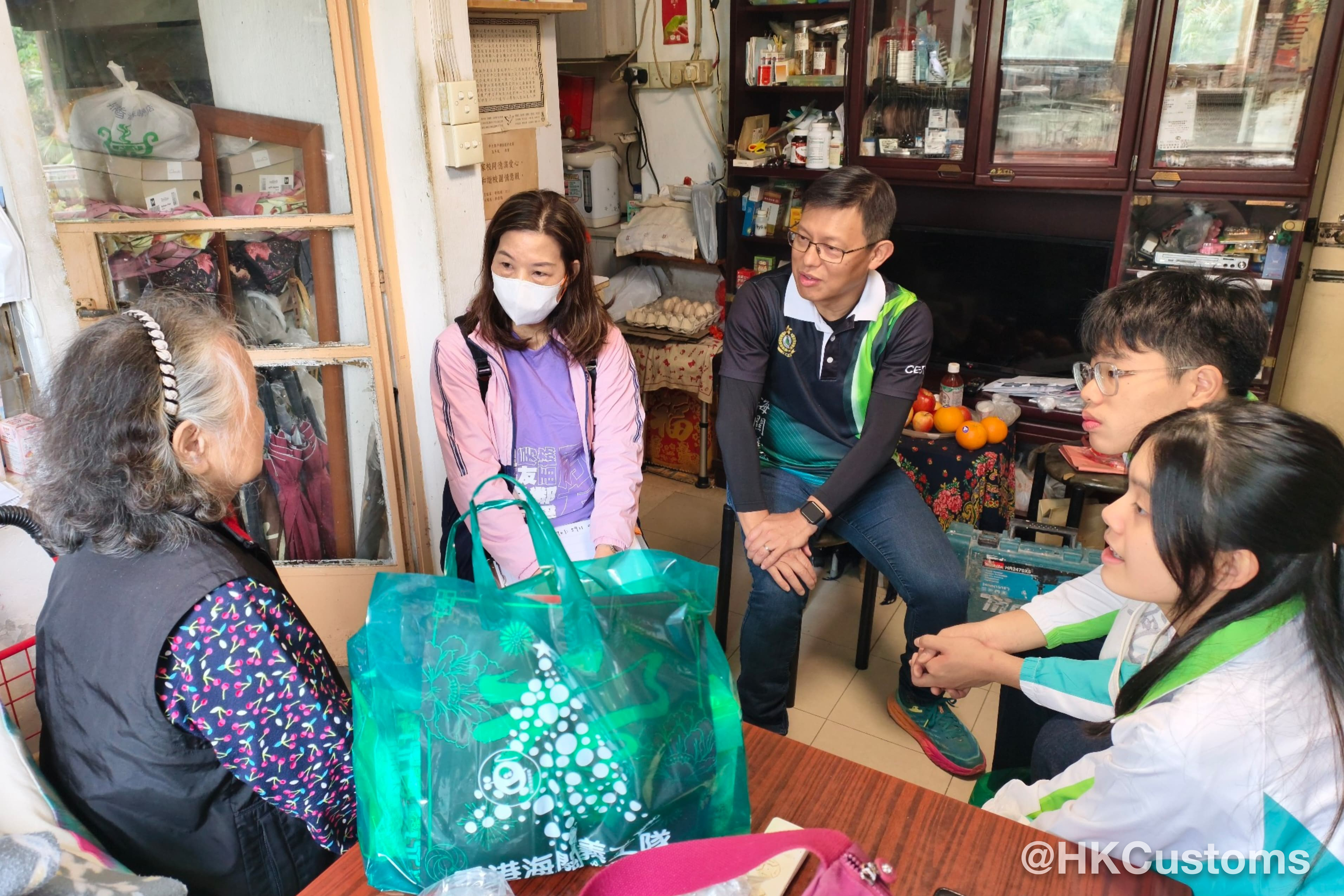 另外,海關助理關長(稅務及策略支援)許劍亦帶同海關義工隊隊員及「香港海關青年發展計劃」(Customs YES)年青會員前往北角健康村探訪長者,並向他們送上物資以表達關愛。