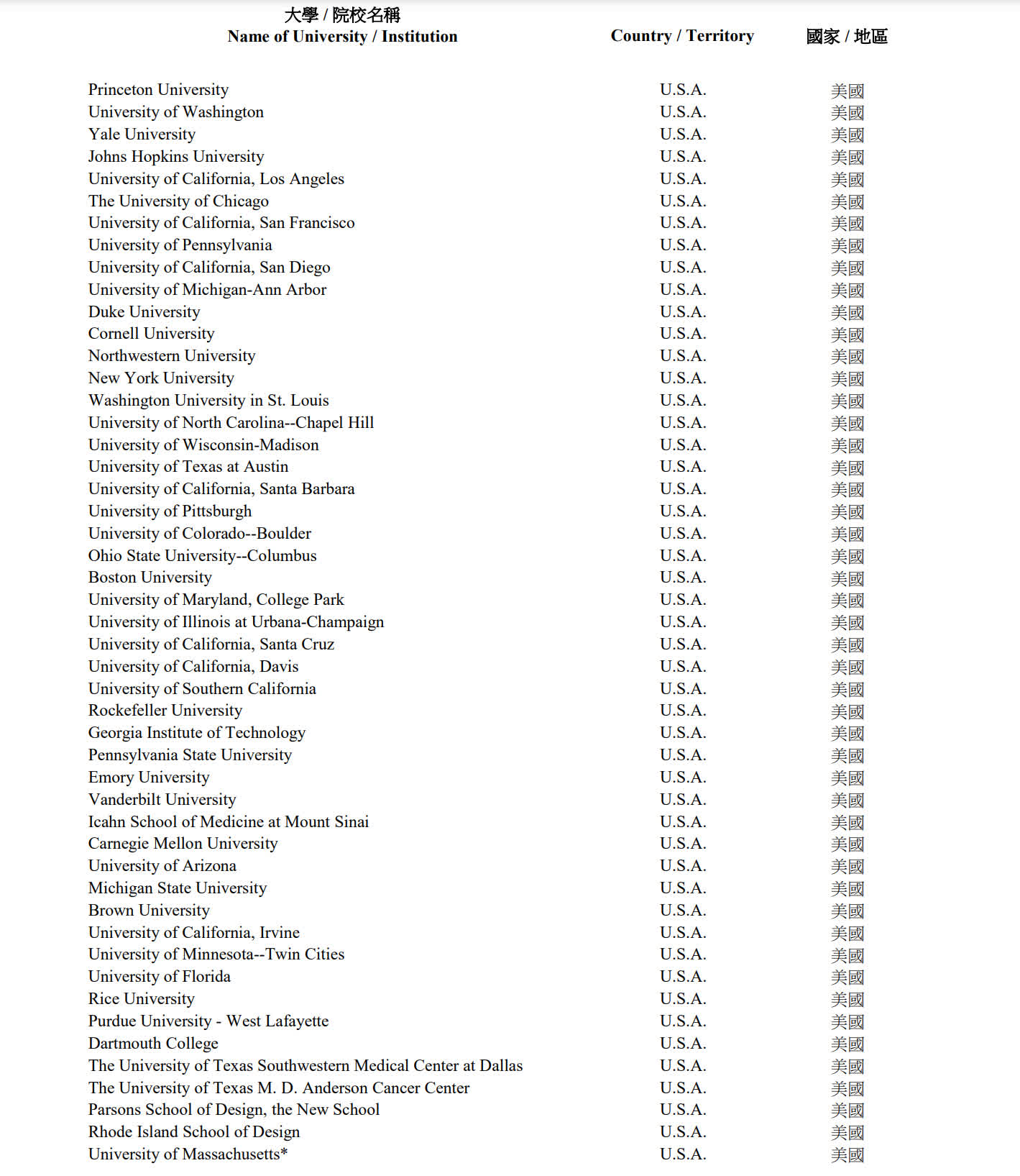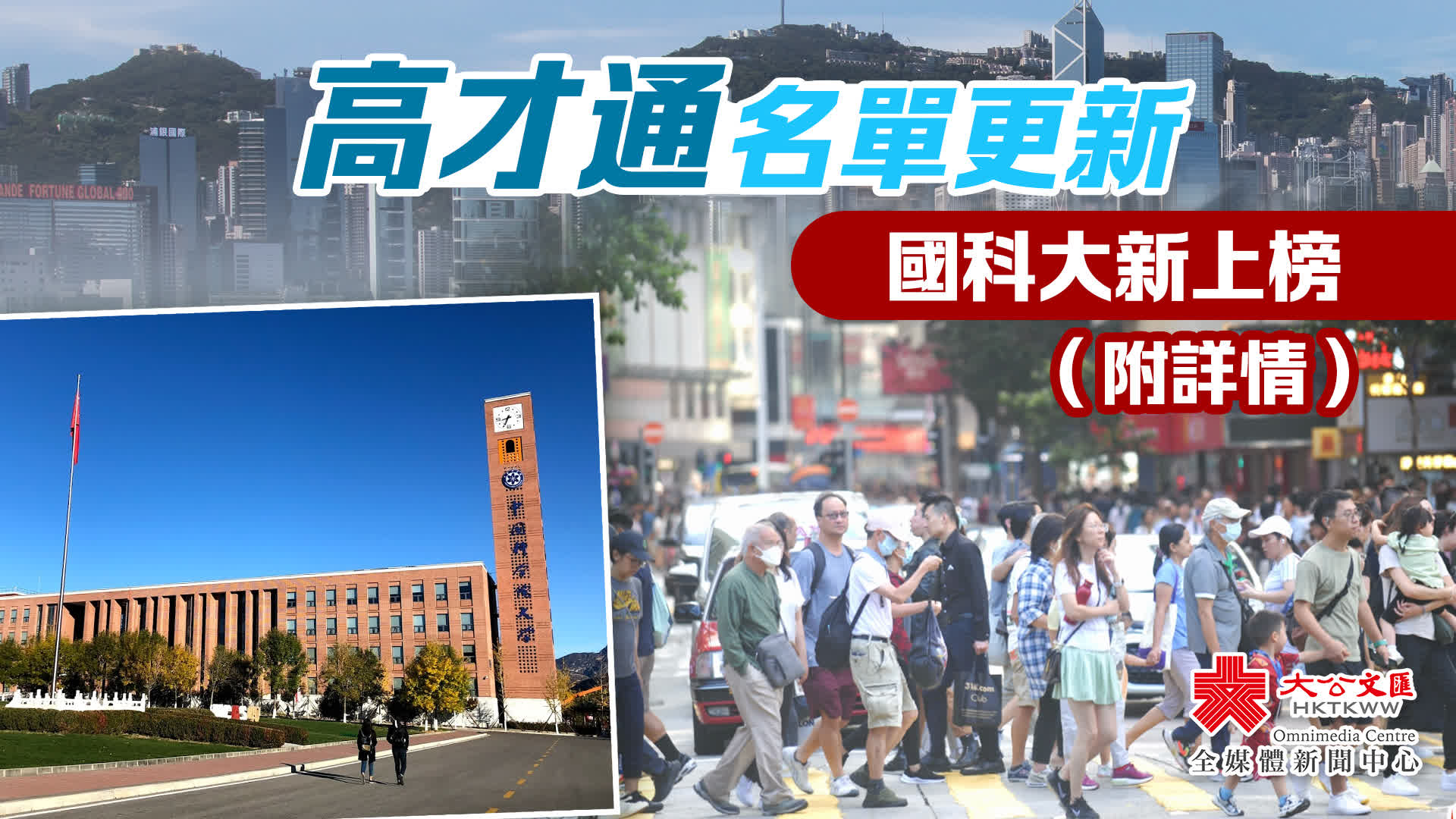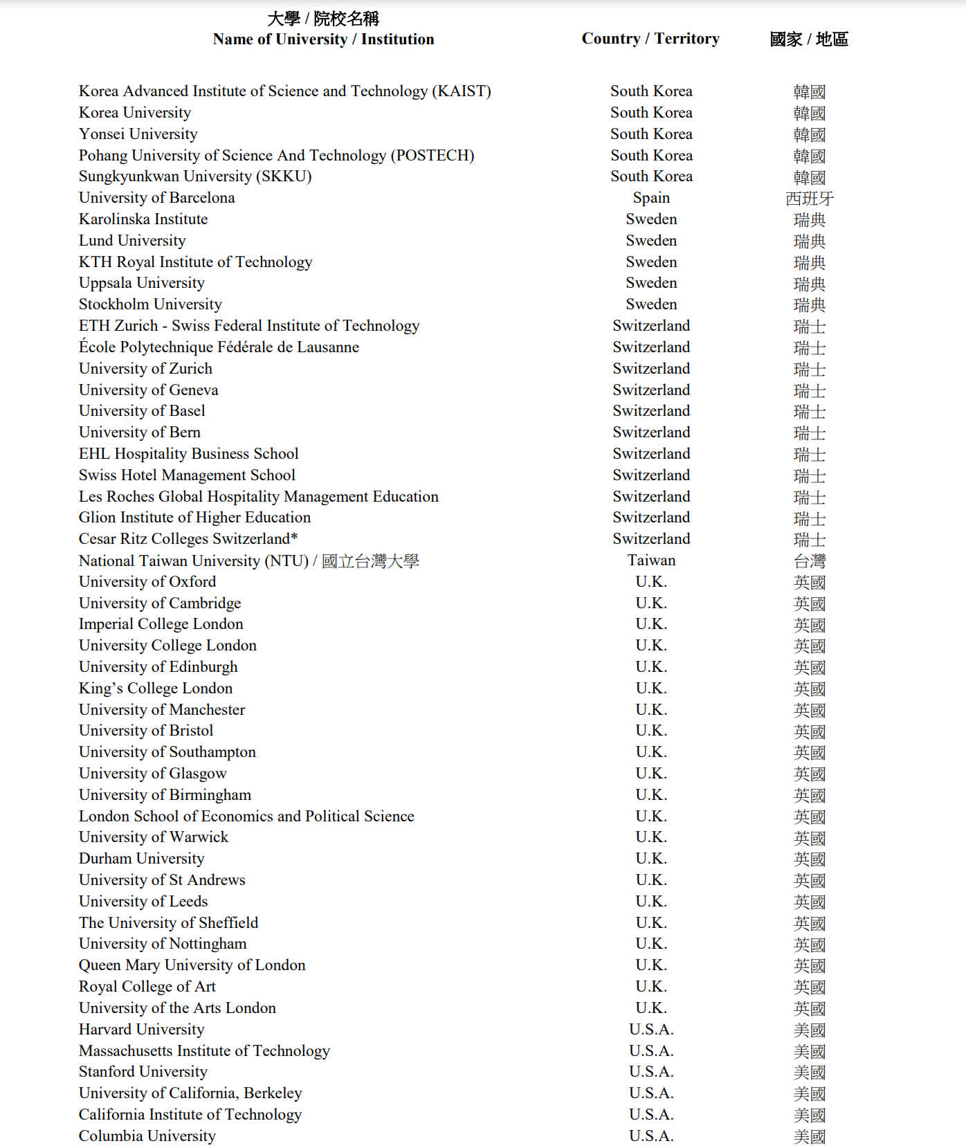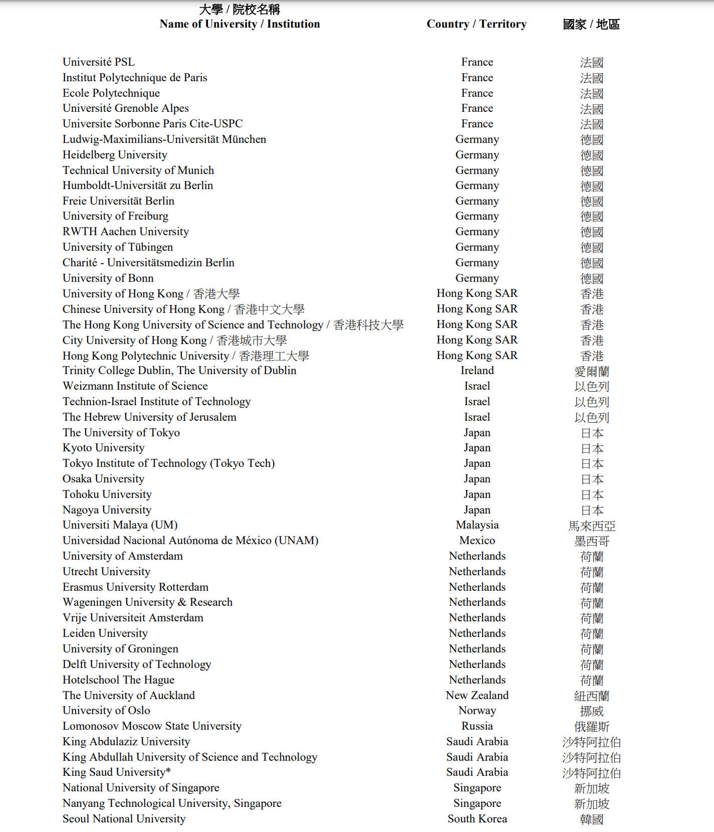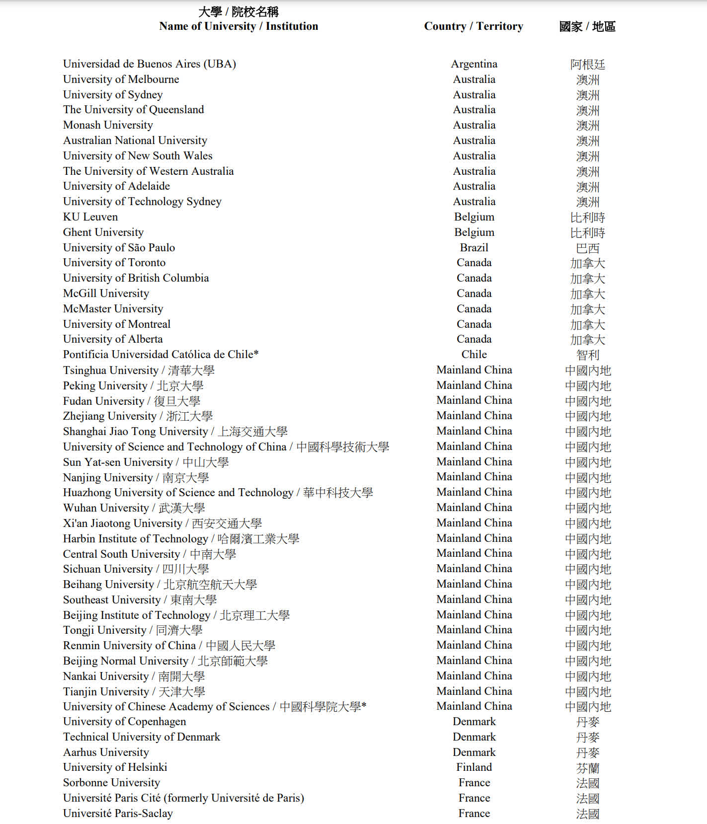 另外,自今年11月1日起,綜合名單亦包括過去五年在QS世界大學排名「藝術與設計」範疇位列前五名的專科學院,以及過去五年於《上海交通大學中國大學排名》位列首20名的內地大學。