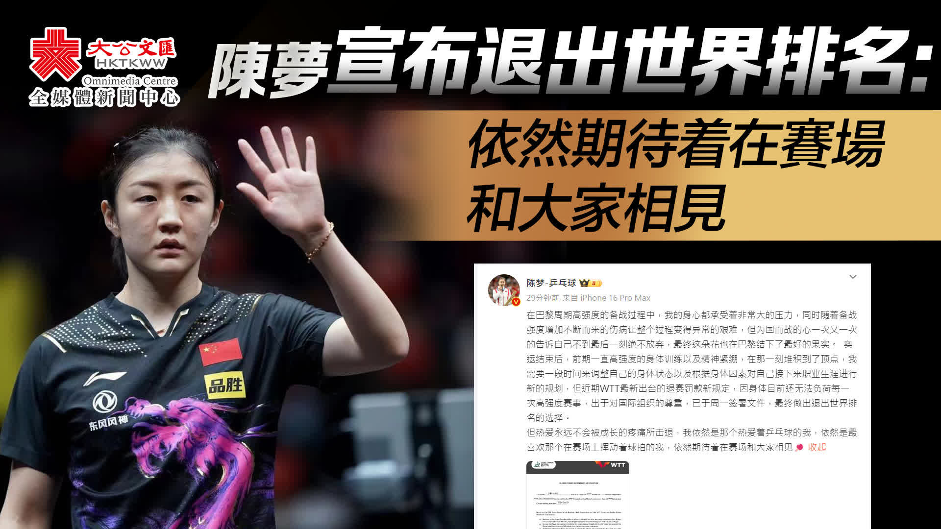 大公文匯全媒體報道,國乒名將樊振東、陳夢今日(27日)先後發布聲明,宣布已經簽署文件,申請退出世界排名。退出世界排名會給運動員帶來什麼影響?