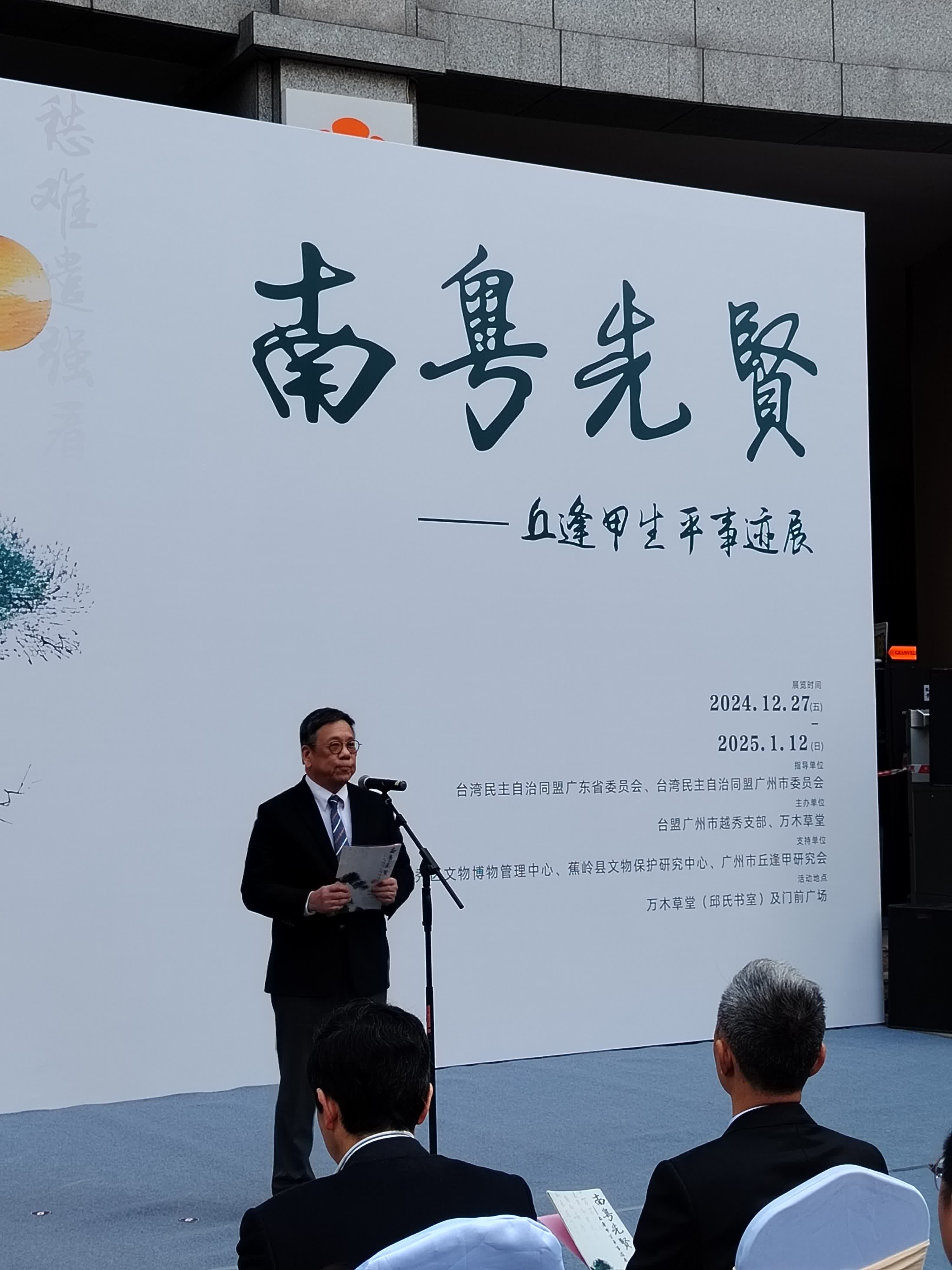 為進一步傳承和弘揚愛國主義精神,12月27日上午,在丘逢甲誕辰160周年之際,由台灣民主自治同盟廣東省委員會、台灣民主自治同盟廣州市委員會指導,台盟廣州市越秀支部、萬木草堂主辦,越秀區文物博物管理中心、蕉嶺縣文物保護研究中心、廣州市丘逢甲研究會傾力支持的「南粵先賢——丘逢甲生平事跡展」啟動儀式在萬木草堂順利舉行。