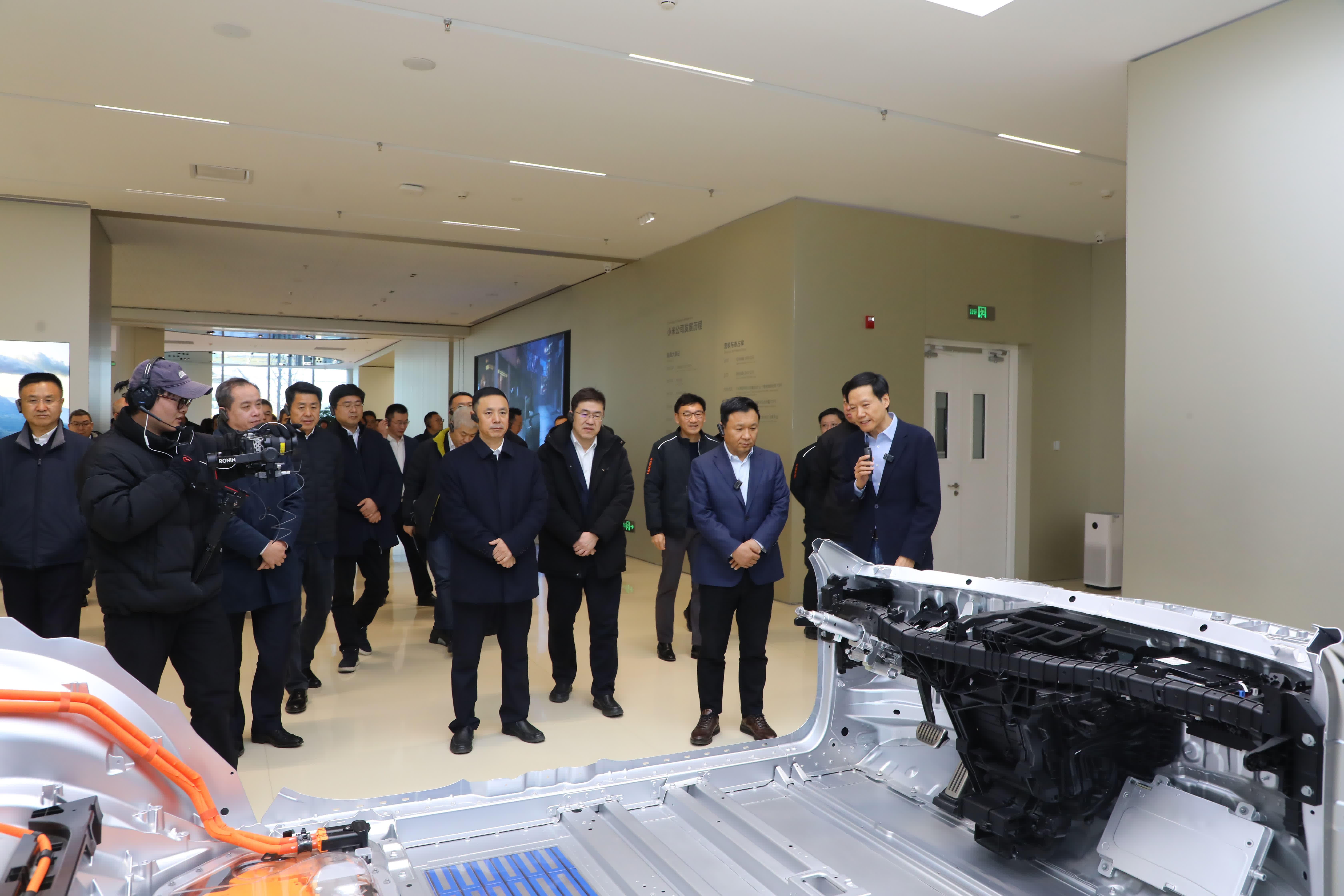座談會前,在雷軍的引導下,張建勇一行參觀了小米汽車展廳、工廠生產車間。
