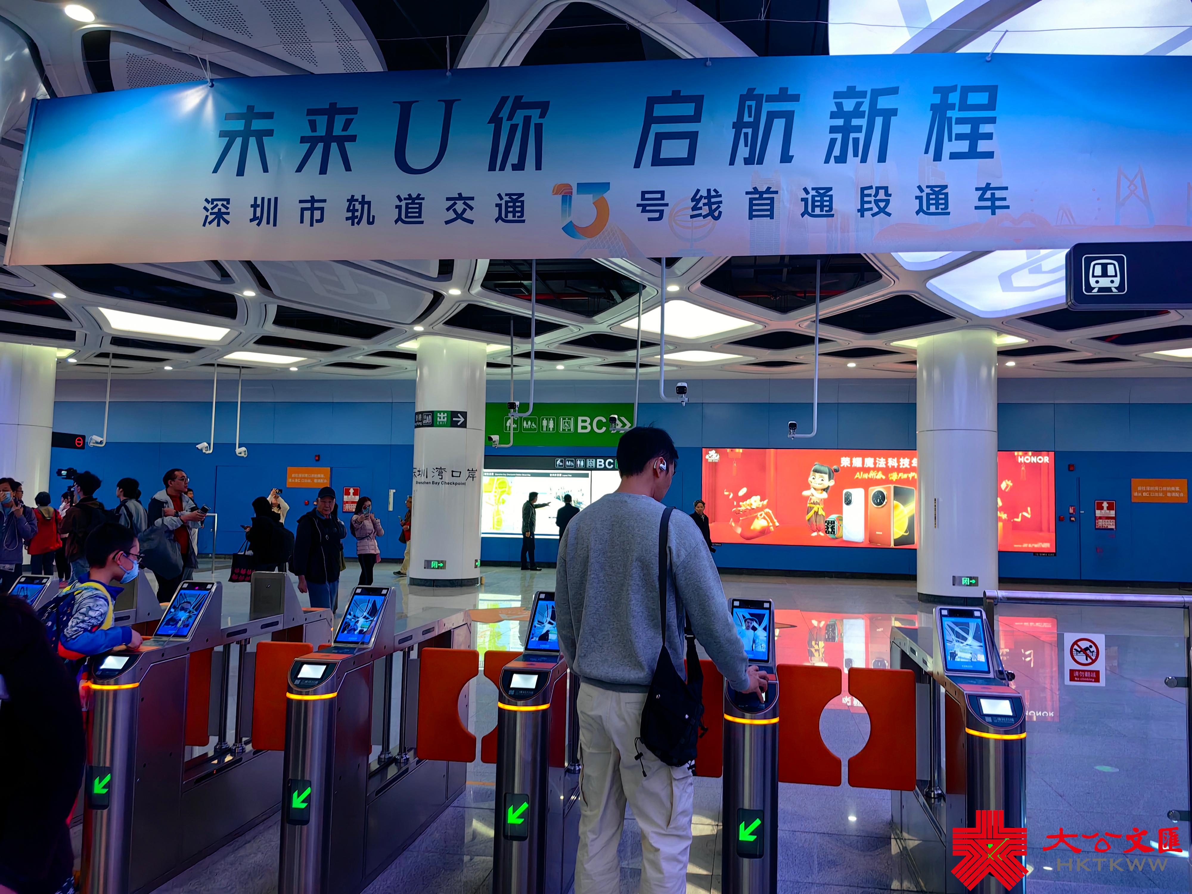 開通當天,有不少市民和「地鐵迷」特意前來搭乘首班車。日常頻繁往來深港兩地的黃女士表示對13號線通車期盼已久,如今深圳灣口岸通地鐵了,從口岸過關後步行近百米就能搭乘地鐵前往其他地方,不需要再換乘公交,方便又快捷。