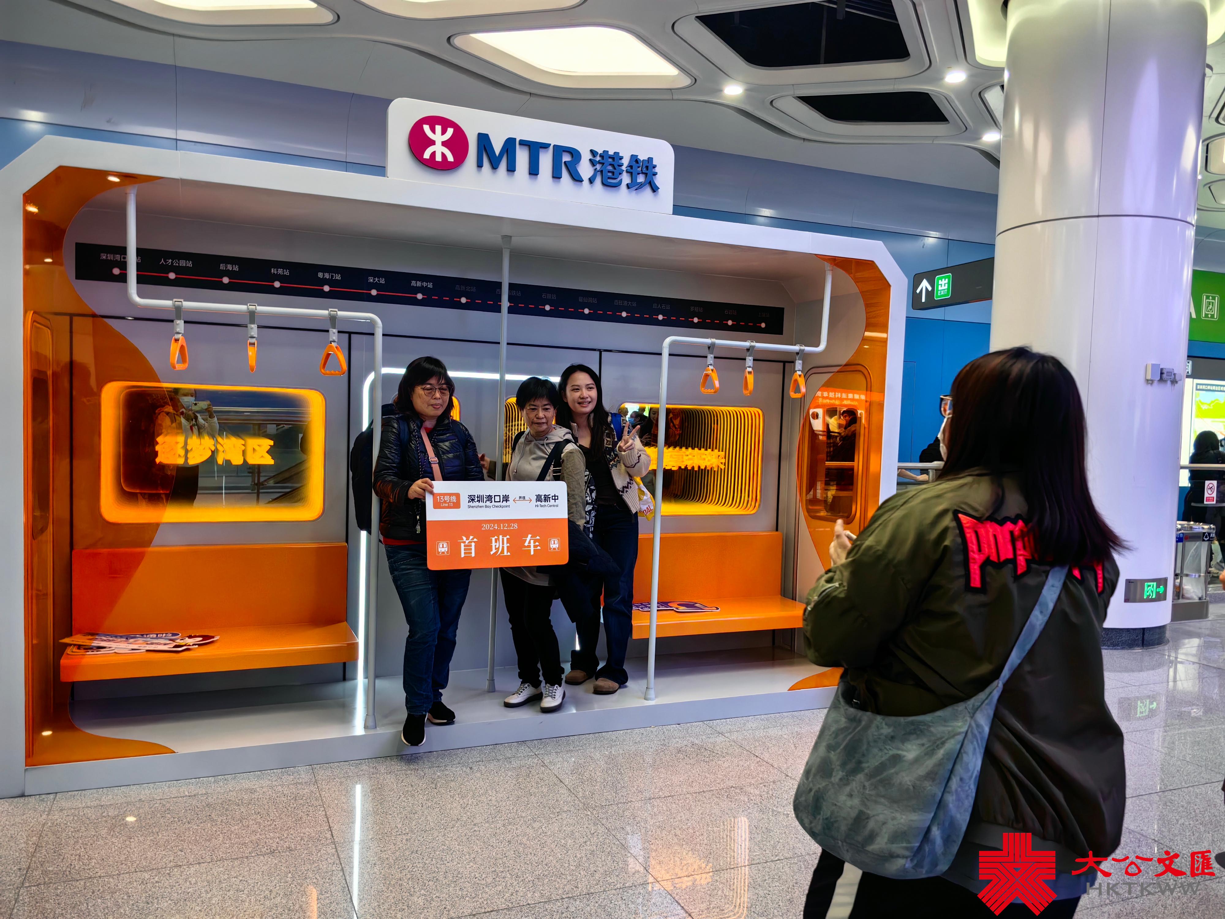 (大公文匯網 記者 郭若溪)「今天太開心了,以後從香港過來更方便啦!」9點即在深圳灣口岸等候的港人胡先生搭乘地鐵13號線後,開心地告訴記者。12月28日,深圳市城市軌道交通13號線首通段(深圳灣口岸站至高新中站)正式開通初期運營。上午10時18分,首班車正式發車,從深圳灣口岸站發出,開往高新中站。沿線7個車站開展了精彩紛呈、各具特色的活動,悠揚的交響樂、酷炫的街舞、塗鴉長圖、特色打卡點,還有U仔派送驚喜禮品。