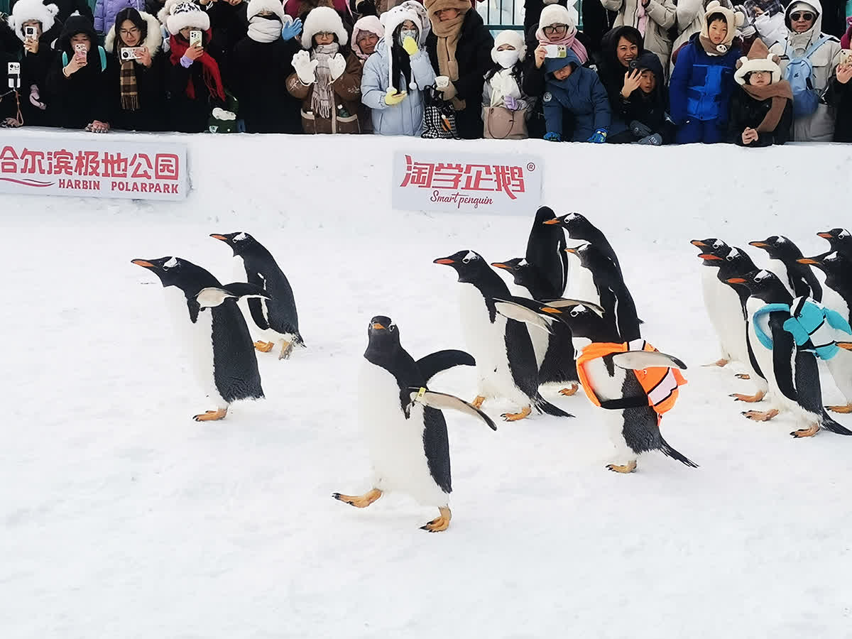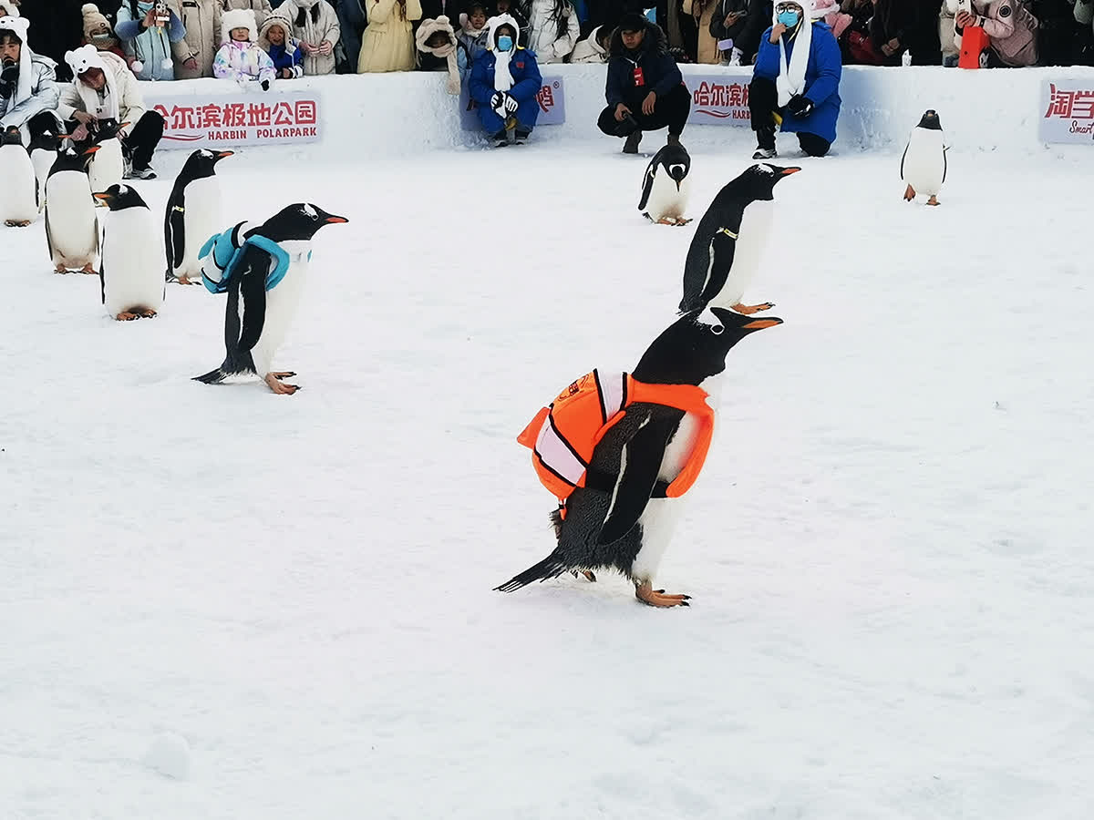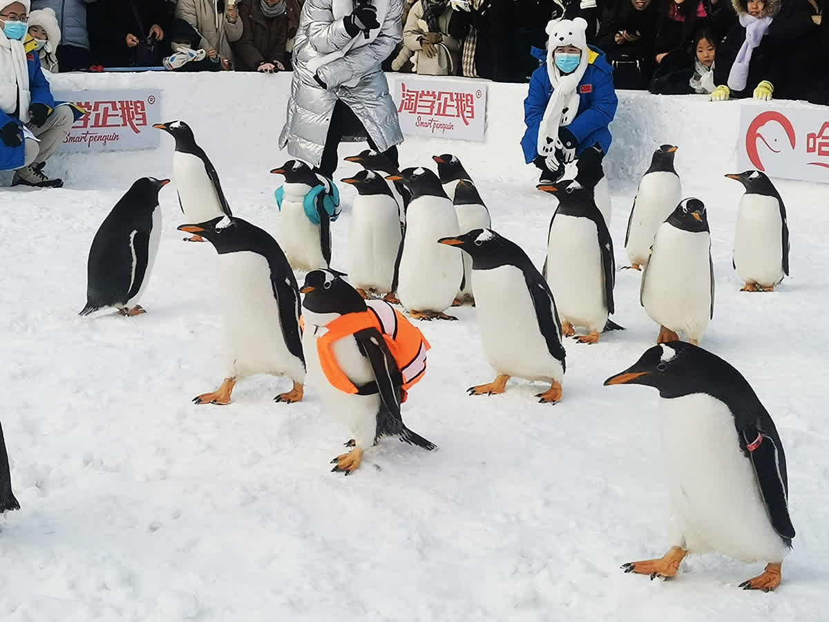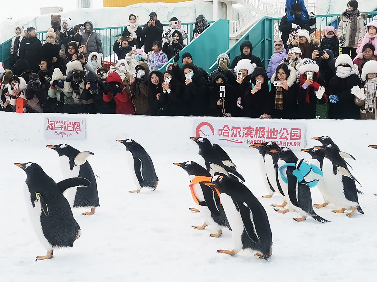 據介紹,自12月28日起每天13:30,盛大的企鵝巡遊會準時開啟。今年的巡遊活動在規模、形式以及服務上進行了全面升級。在極地廣場,20只珍稀南極企鵝亮相,每隻價值近50萬元,全國遊客只要來到哈爾濱極地公園,就有機會免費看到這場價值千萬的淘學企鵝冰雪大巡遊。