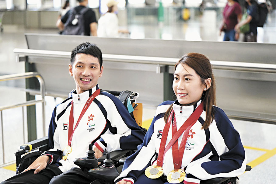 其中奪得個人和混合雙人賽金牌的硬地滾球代表何宛淇,其奮鬥抗病踏上奧運金牌之路的故事觸動人心。她自2歲起確診先天性脊髓肌肉萎縮症,肌肉難以發力需以輪椅代步,兒時雖一度有過放棄人生念頭,但家人的愛與關懷讓她振作起來,更藉硬地滾球找到人生意義。她今年初與並肩多年的管道助理員兼教練李榮傑成婚,三戰殘奧終在今夏一起踏上最高一格頒獎台。二人在獲勝後情深一吻,在巴黎留下浪漫一幕。