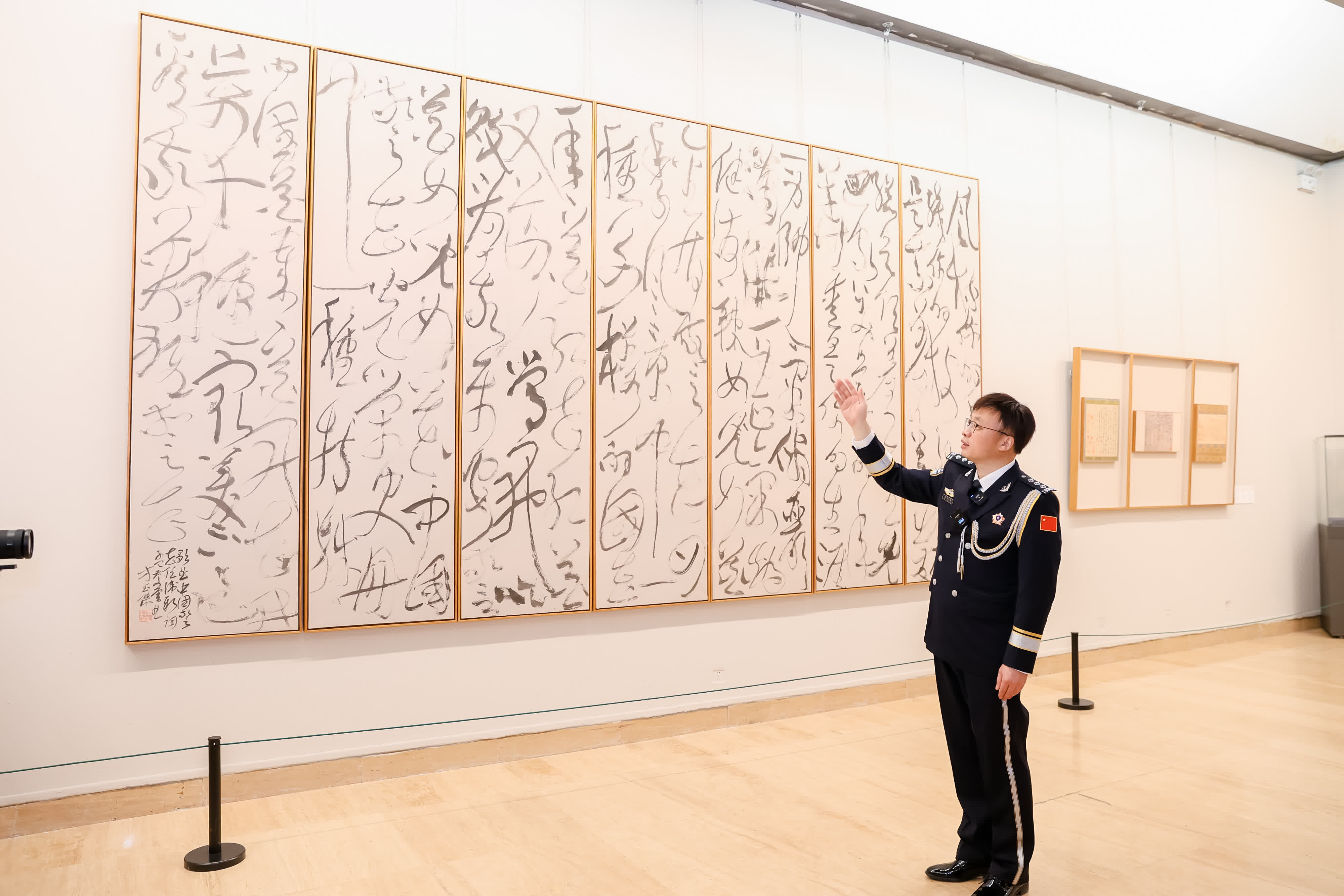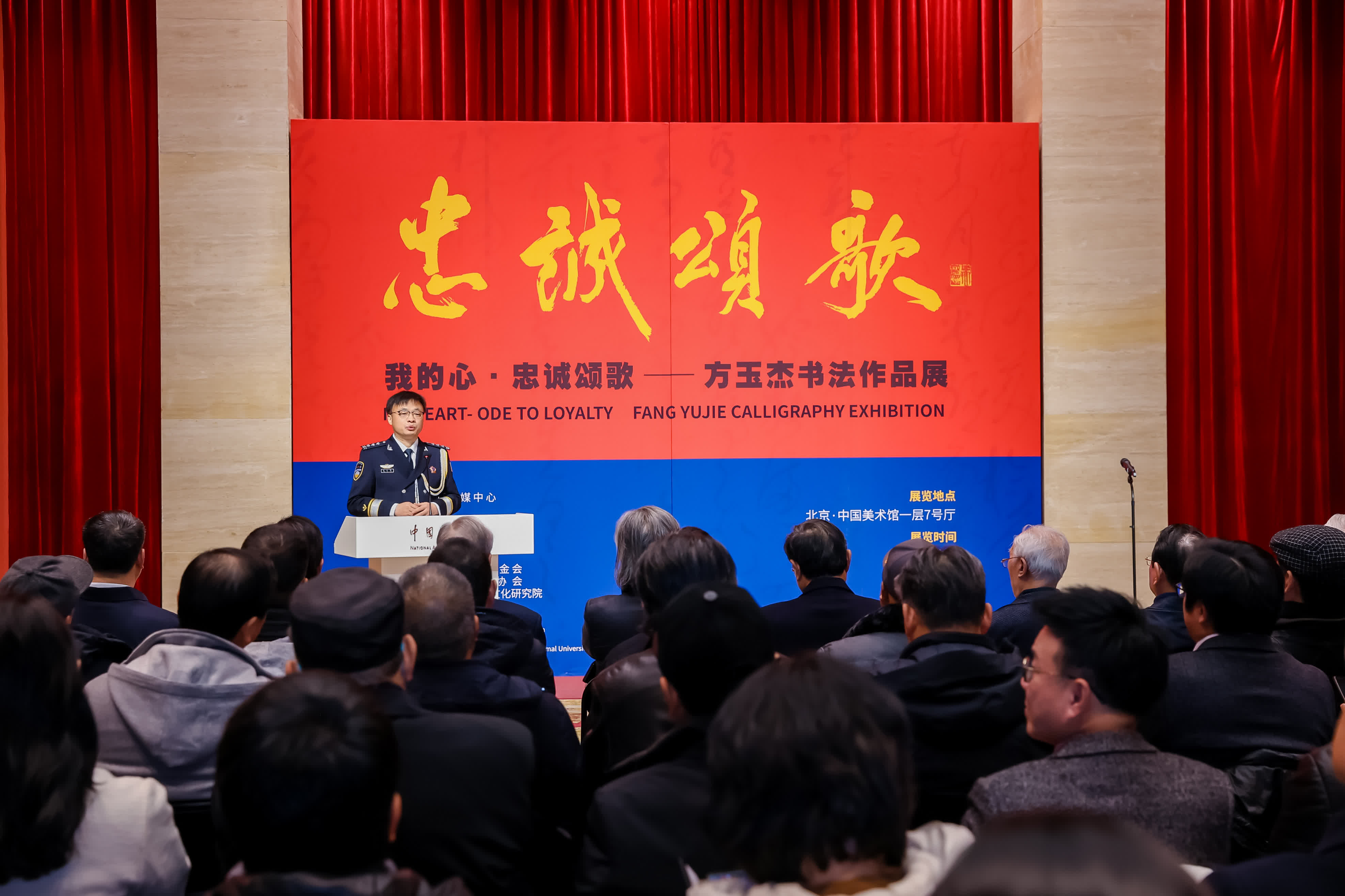 【香港大公文匯全媒體記者張寶峰北京報道】為了歌唱祖國,喜迎第五個中國人民警察節,並用書法藝術頌揚人民警察忠誠奉獻精神,致敬警嫂警屬,展示警營藝術風采,12月28日上午,「我的心·忠誠頌歌——方玉傑書法作品展」在中國美術館隆重開幕。展覽將持續至2025年1月3日。