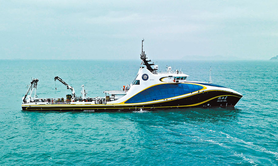 (香港文匯報 記者 盧靜怡)在珠海高欄港碼頭上,全球首艘智能型無人系統科考母船「珠海雲」安靜地停泊着。它的流線型船身和玻璃幕牆設計,讓人一眼聯想到豪華遊艇。在醒目的外表下,「珠海雲」內藏高度國產化的無人操控技術,搭載自研發動機與無人平台,堪稱「全能無人航母」。作為中山大學珠海校區建設25周年活動的一部分,「珠海雲」近日向媒體開放。南方海洋實驗室船舶運行管理中心主任張小波介紹,這艘船自2023年1月交付後已完成21次任務,包括大灣區綜合科研考察、仿生魚實驗和水下機械人測試。未來「珠海雲」將與港澳高校合作,在粵港澳大灣區開展更多深海科考項目,「這不僅是科研的利器,更是灣區創新發展的重要支撐。」