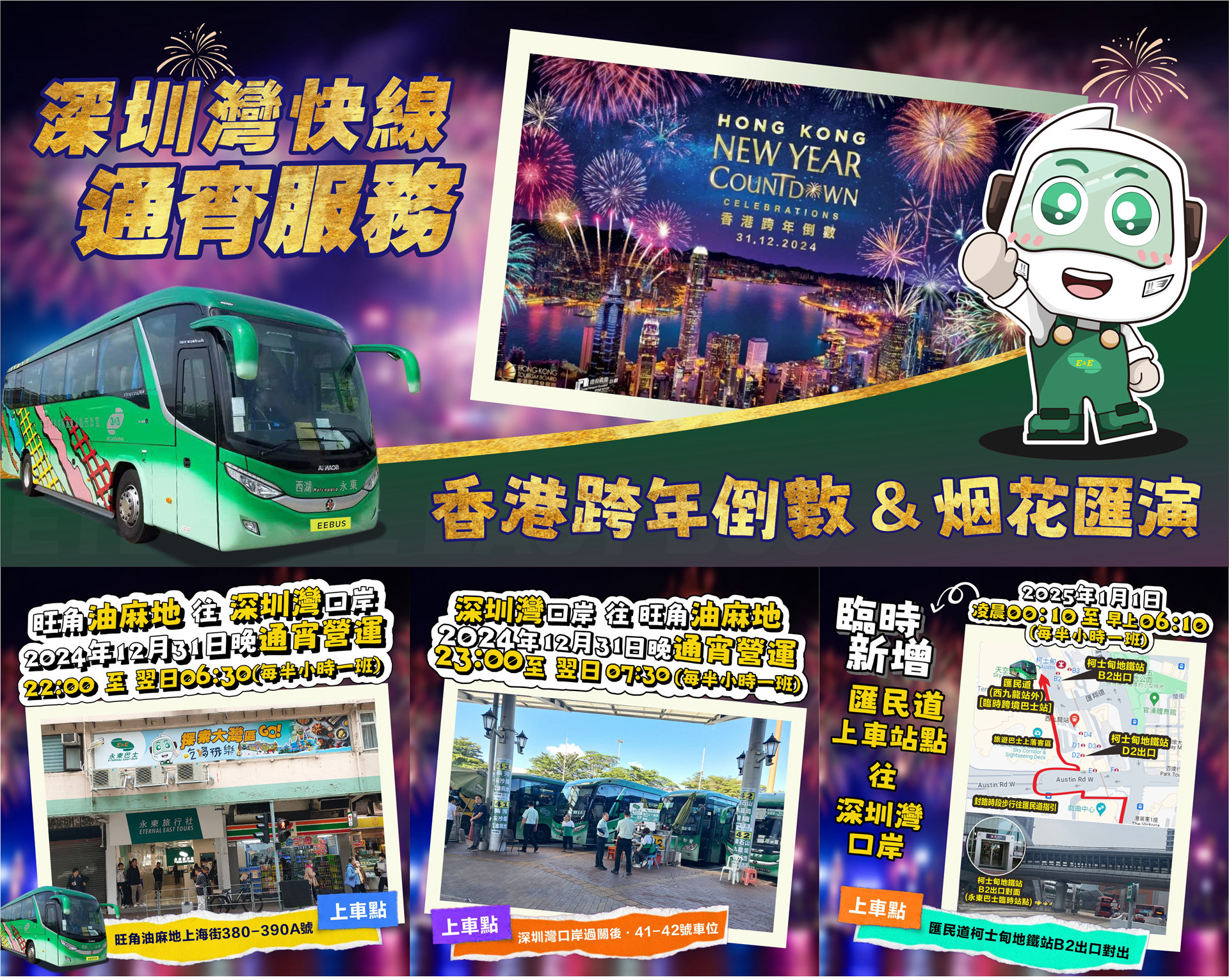 ◆ 深圳灣口岸往旺角油麻地,2024年12月31日23:00至翌日07:30,每半小時一班