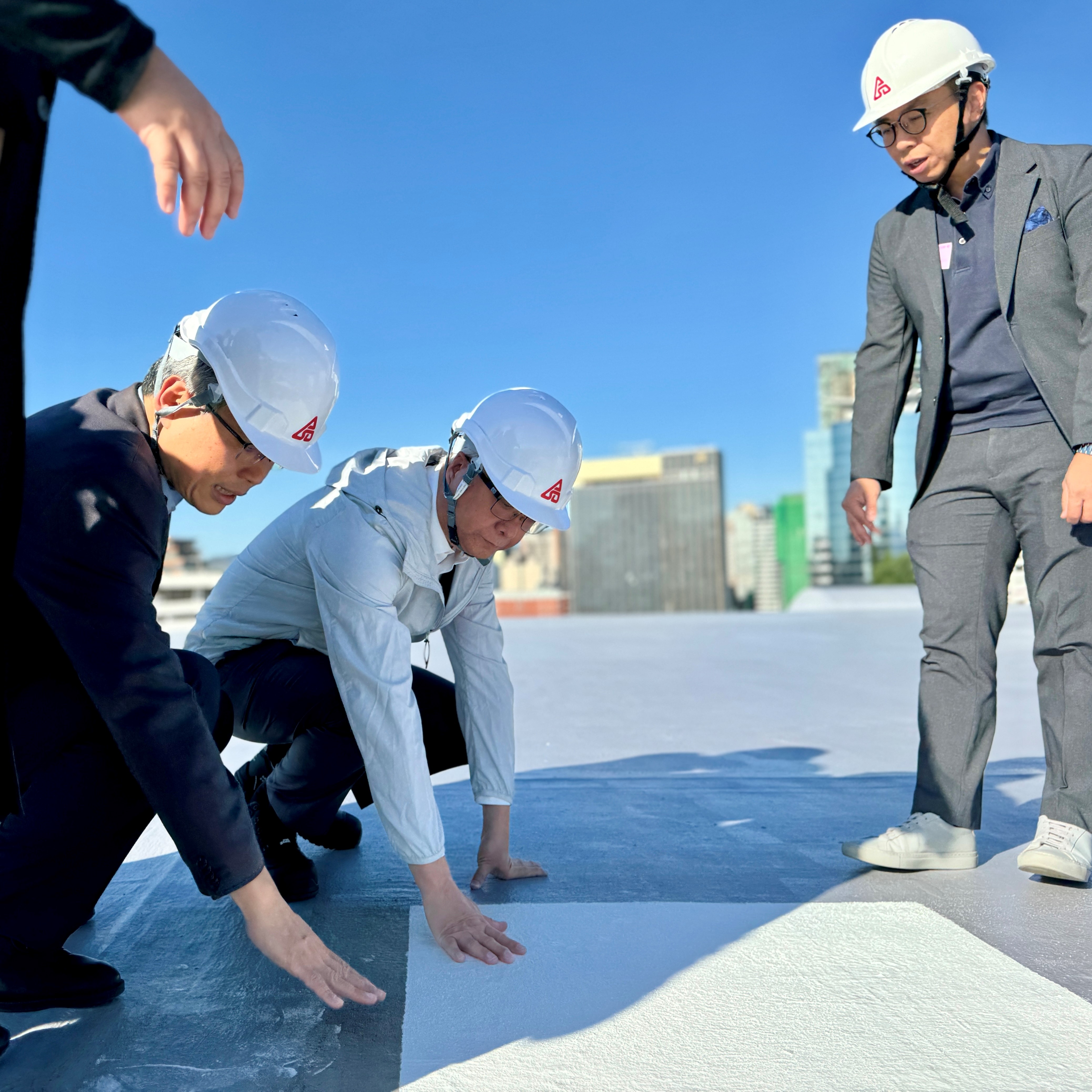 我早前到體育館的天台,親身感受到天台塗上塗層後,與沒有塗層的部分有明顯的温差。體育館的塗層覆塗面積包括天台表面及天台側牆,約為9700平方米,塗層預計可為體育館降溫至平均24度,每年可節省約30萬度電,相等於減少約150噸碳排放量。另一方面,塗上塗層後的天台防水層,因為溫度變化大幅減少,預計防水層的壽命亦可以得到延長,節省維修成本。