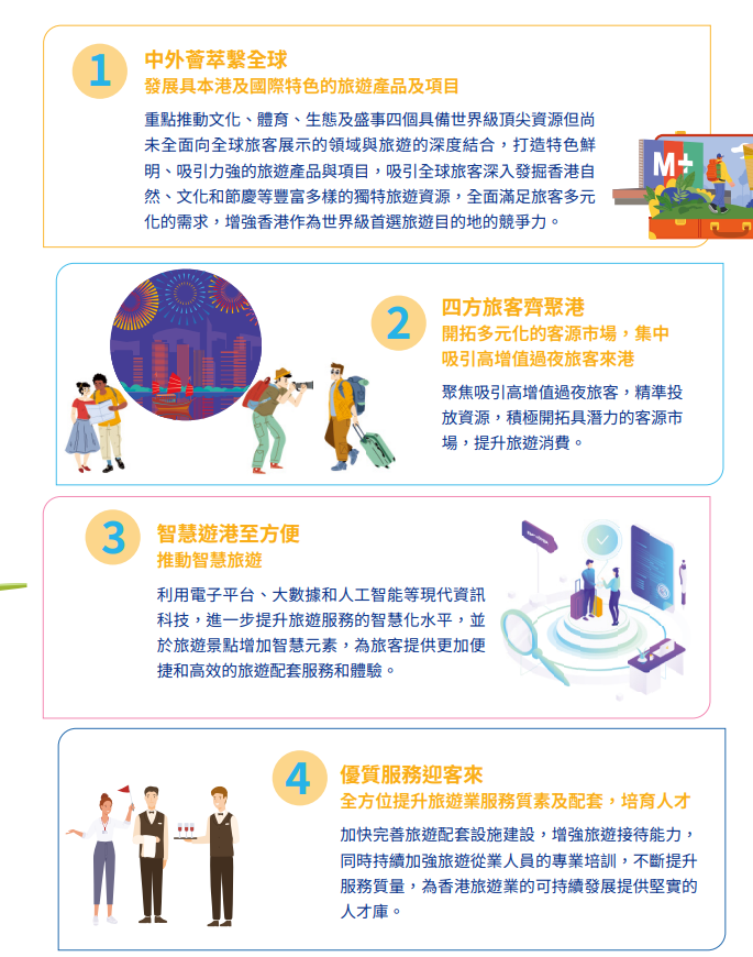 - 堅持香港作為高品質旅遊體驗城市的定位;