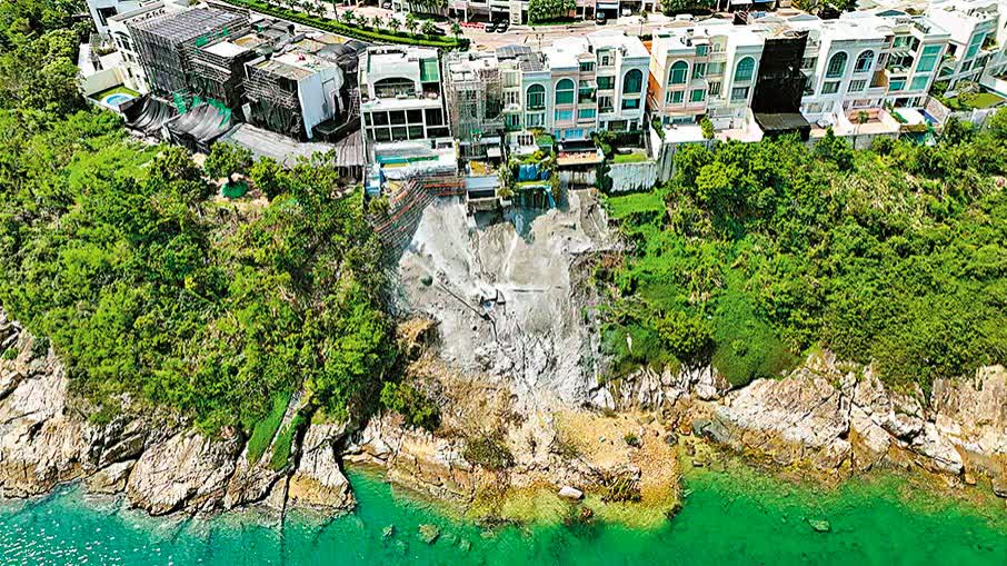 (大公報記者 盛德文 鄭文迪<文>遂初<圖>)去年9月一場世紀黑色暴雨,揭發紅山半島多間臨海獨立屋有僭建及霸佔官地問題,促使政府提出修訂《建築物條例》。一年多過去,大公報記者日前再到紅山半島一帶查訪,發現當日發生山泥傾瀉的斜坡已完成加固,「暴露」屋苑僭建問題「源頭」的70、72號屋,僭建平台及地庫仍在;旁邊曾一度拒讓屋宇署人員勘察的74號屋最誇張,上下共三層的僭建地牢仍「保存」得相當完好,亦未見有施工跡象,似乎對清拆令置若罔聞。