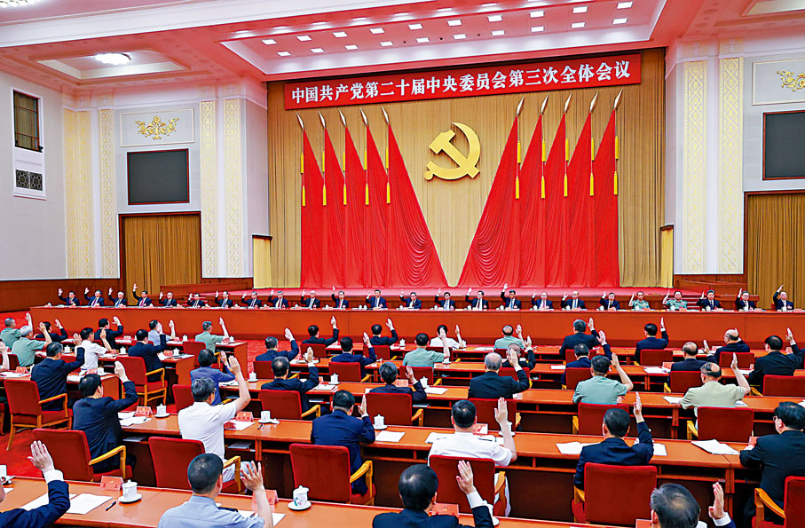 7月15日至18日,中共二十屆三中全會召開,全會發布公報,並審議通過了《中共中央關於進一步全面深化改革、推進中國式現代化的決定》。全會提出七個「聚焦」,首重「聚焦構建高水平社會主義市場經濟體制」,強調繼續把改革推向前進。公報強調「必須更好發揮市場機制作用」,為市場化改革指明方向。全會全面擘畫了全面深化改革推進中國式現代化藍圖,為破解百年未有變局下中國短期增長壓力與中長期體制機制難題指明路徑。全會指出,到二○三五年,全面建成高水平社會主義市場經濟體制,中國特色社會主義制度更加完善,基本實現國家治理體系和治理能力現代化,基本實現社會主義現代化,為到本世紀中葉全面建成社會主義現代化強國奠定堅實基礎。到二○二九年中華人民共和國成立八十周年時,完成本決定提出的改革任務。