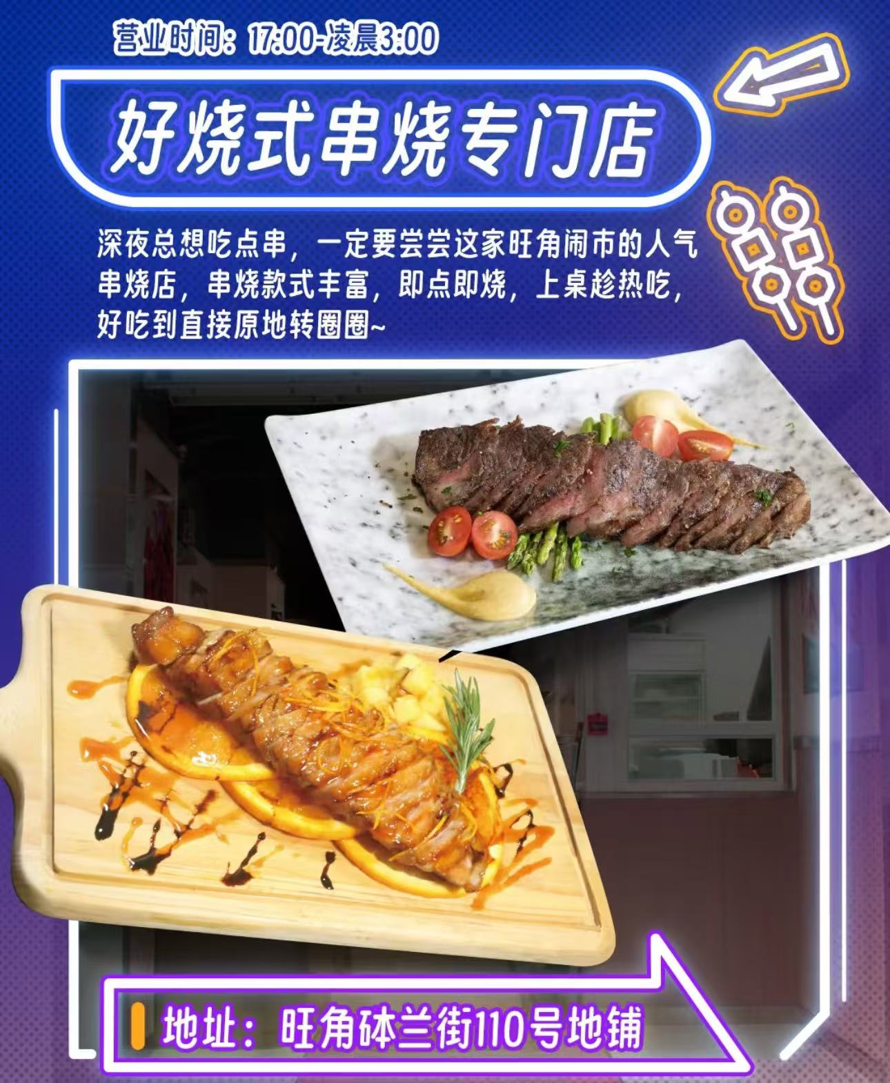 深夜總想吃燒烤,又想吃地道的香港味?來旺角鬧市中的這家人氣串燒店就對了!滋滋作響的肉串再配上一杯小飲料,為跨年夜增添美食滋味!