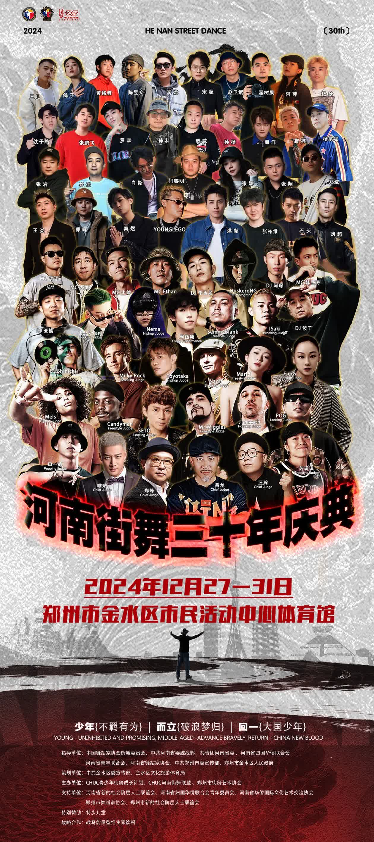 據了解,河南街舞聯盟作為主辦單位,以「全球街舞精英邀請賽」為理念,策劃「河南街舞30年」文化盛典暨第十屆WDG中國(鄭州)國際街舞大賽文化周,由河南街舞30年慶典晚會、第十屆WDG中國(鄭州)國際街舞大賽、第七屆河南街舞文化盛典暨街舞和爵士舞電視春晚、國際街舞大師訓練營、BDS世界青少年街舞大賽全國總決賽、中國青少年街舞國家隊集訓營組成。根據賽事安排,將於12月31日舉辦河南街舞30周年晚會暨第十屆WDG中國(鄭州)國際街舞大賽頒獎典禮。