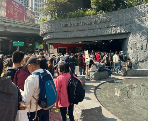 大公文匯全媒體報道,《香港旅遊業發展藍圖2.0》近日發布,其中提到十大旅客到訪景點,就包括太平山頂。適逢除夕,山頂纜車站再現人龍,讀者如想要乘搭纜車欣賞香港夕陽或夜景,就要預留充足時間。