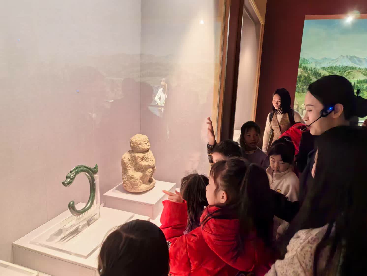 赤峰市曾出土了距今約5000年的大型玉龍,它是中國最早的龍形器物,被譽為「中華第一龍」,因此赤峰又被稱為「玉龍之鄉」。在赤峰市博物館,孩子們對玉龍、陶器等文物,及原始先民、草原王朝遼國的生活興趣濃厚,拉着講解員問個不停。來自香港嘉諾撒聖方濟各學校的姜璟瑜同學說,這是第一次來到內蒙古,與赤峰的學生交朋友、交換禮物,到赤峰博物館了解玉龍文化,很開心以這種特別的方式迎接新年到來。