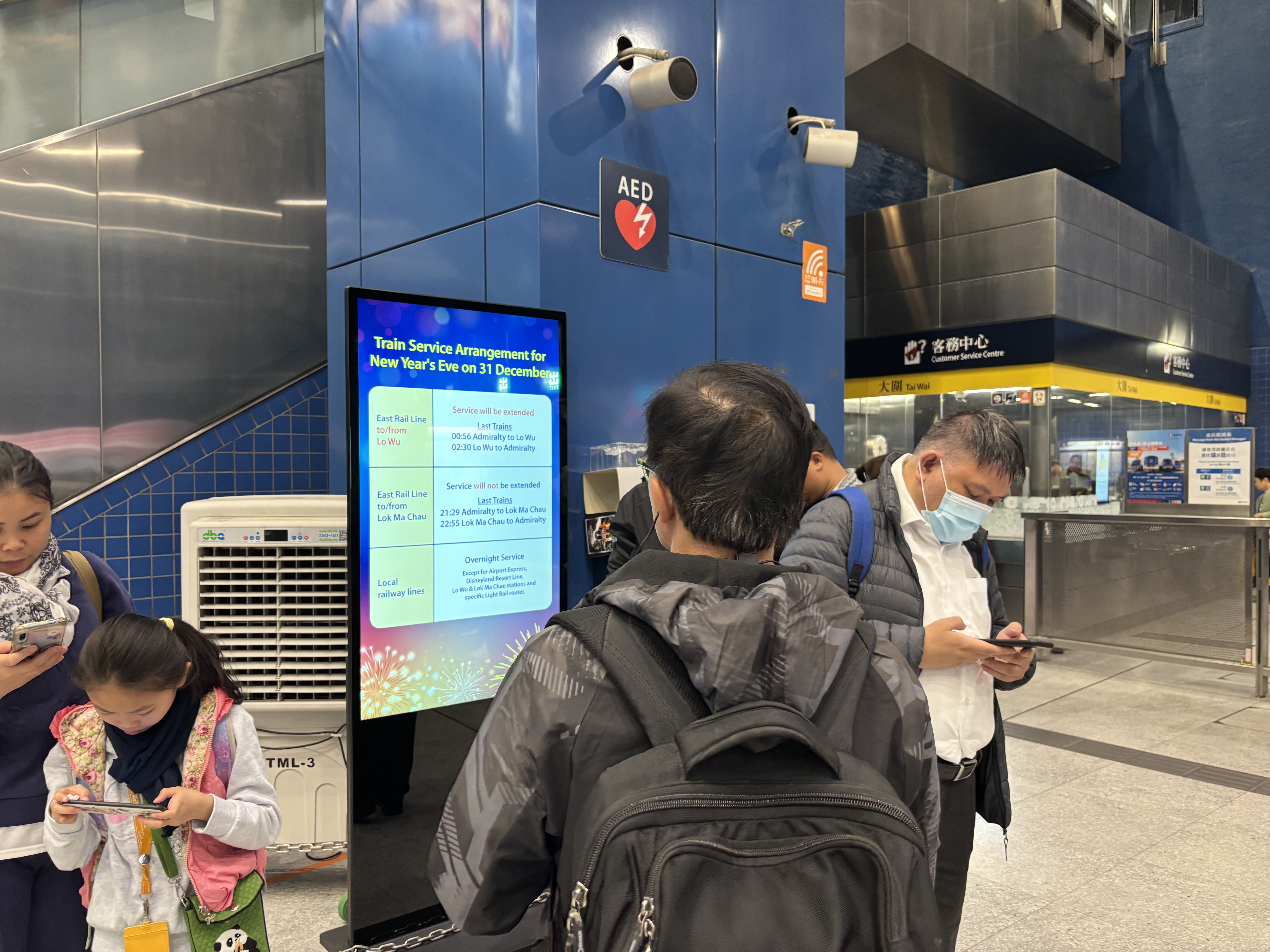 為配合跨年倒數活動,除夕夜的口岸過關安排,除了港珠澳大橋口岸及皇崗口岸會如常24小時運作外,深圳灣口岸亦會24小時開放;而羅湖口岸的旅客清關服務則延長至翌日凌晨2時。地鐵站內亦能見到配合口岸的列車延長服務安排通知。