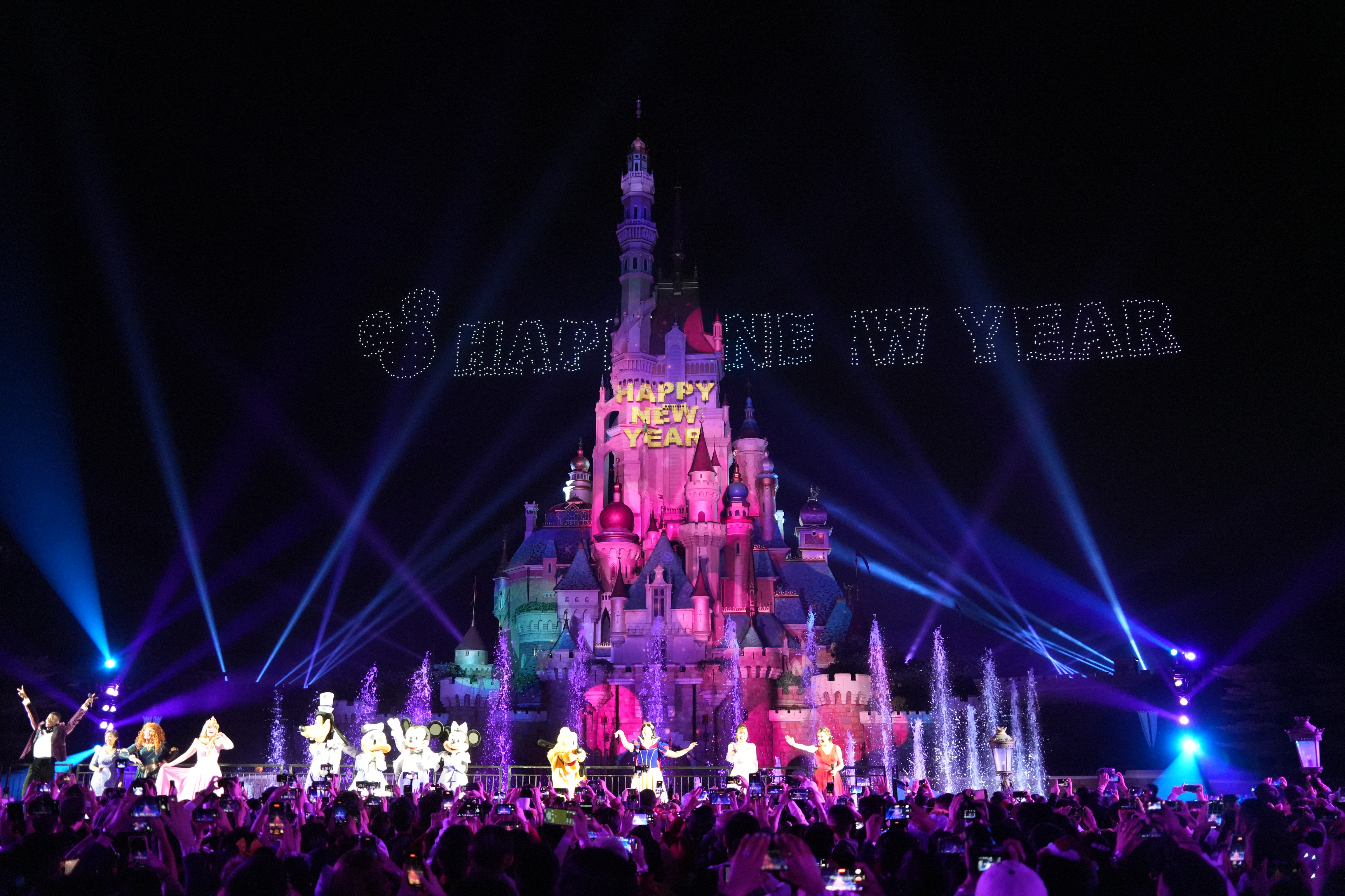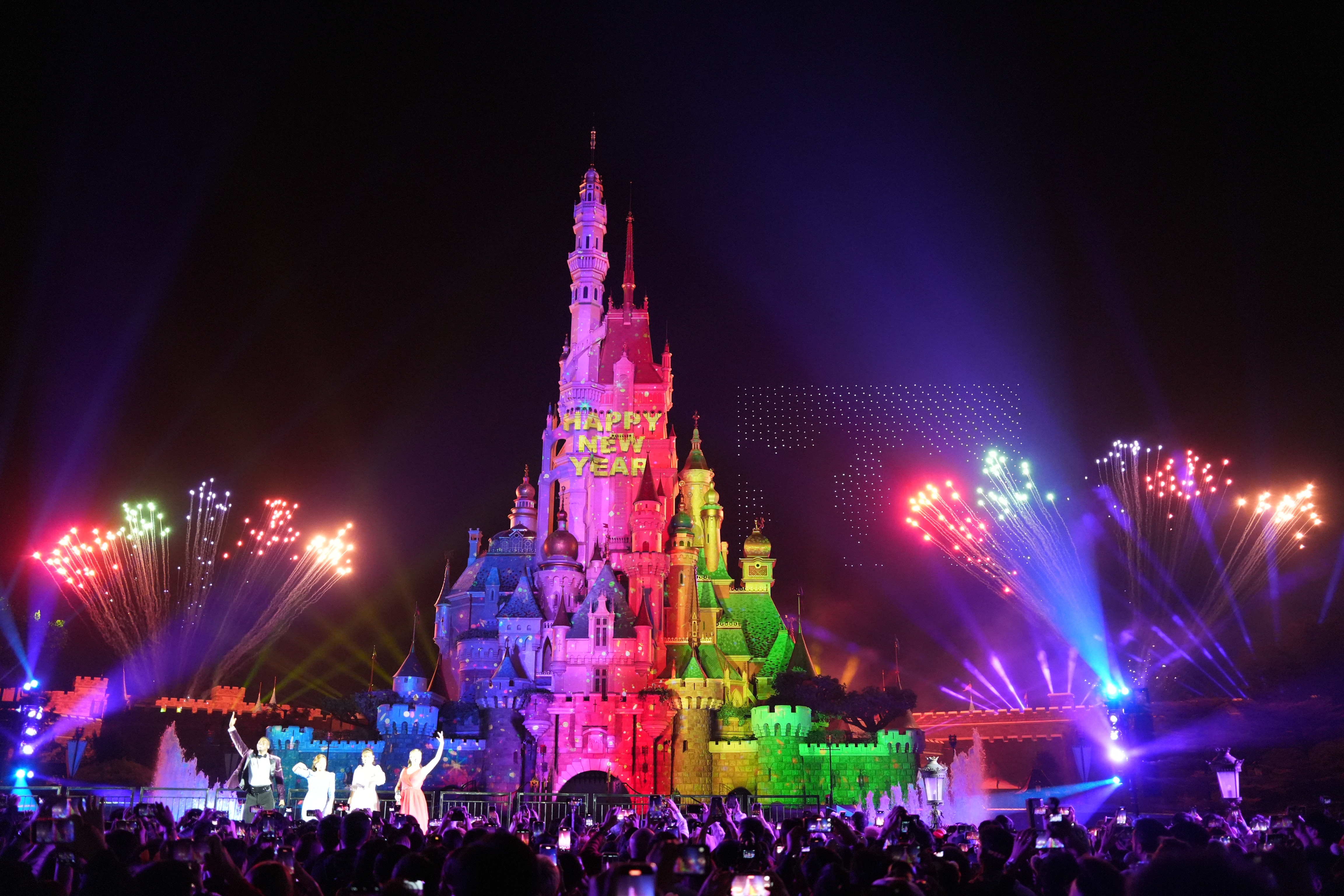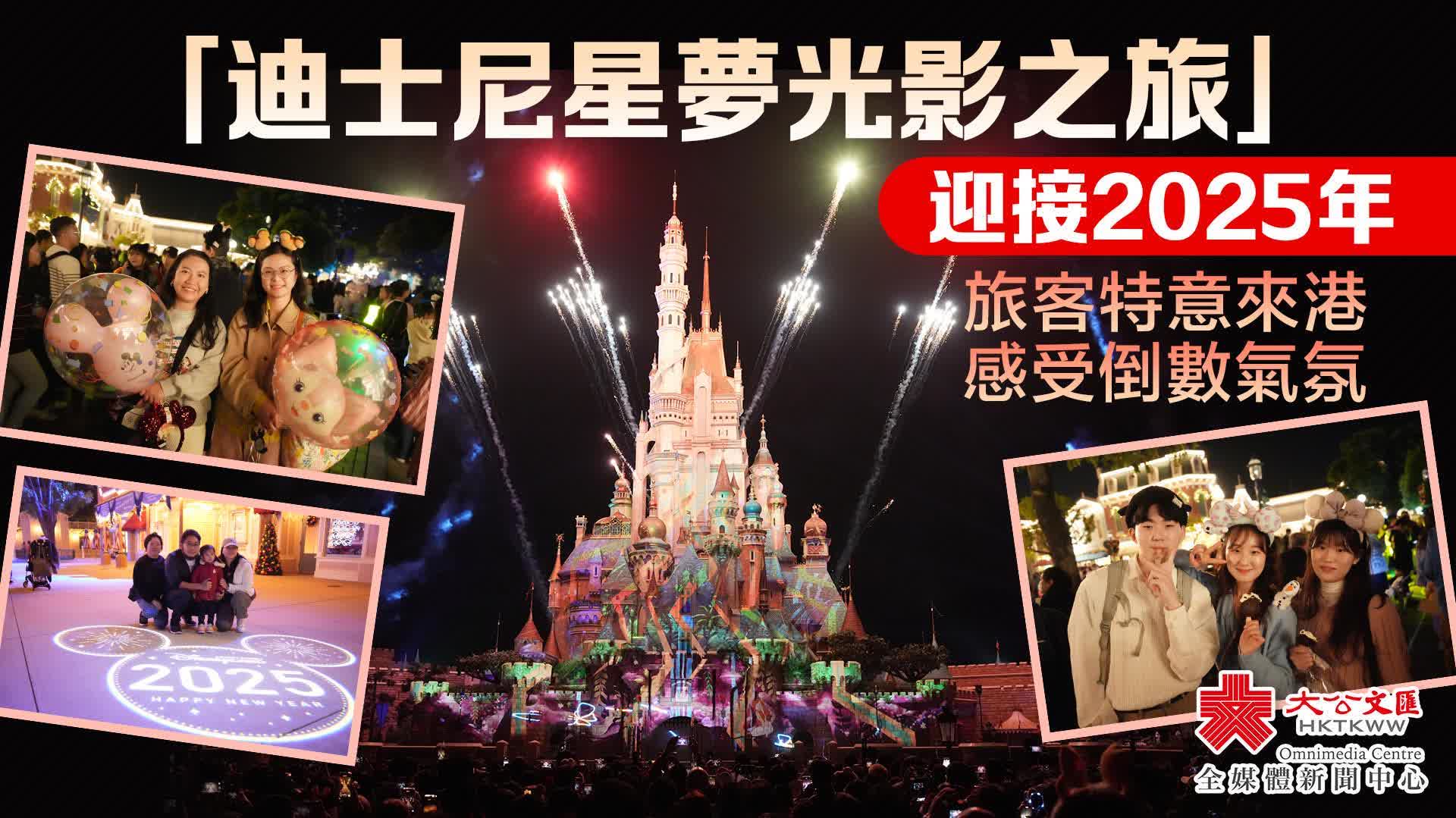 大公文匯全媒體記者王俊傑報道,踏正午夜12時,香港迪士尼樂園上演「跨年倒數時刻」,透過20分鐘的「迪士尼星夢光影之旅」的多媒體夜間城堡匯演,以及迪士尼朋友與男女歌手上台演出,結合燈光、煙火及無人機特效,與市民和旅客共同迎接2025的到來。
