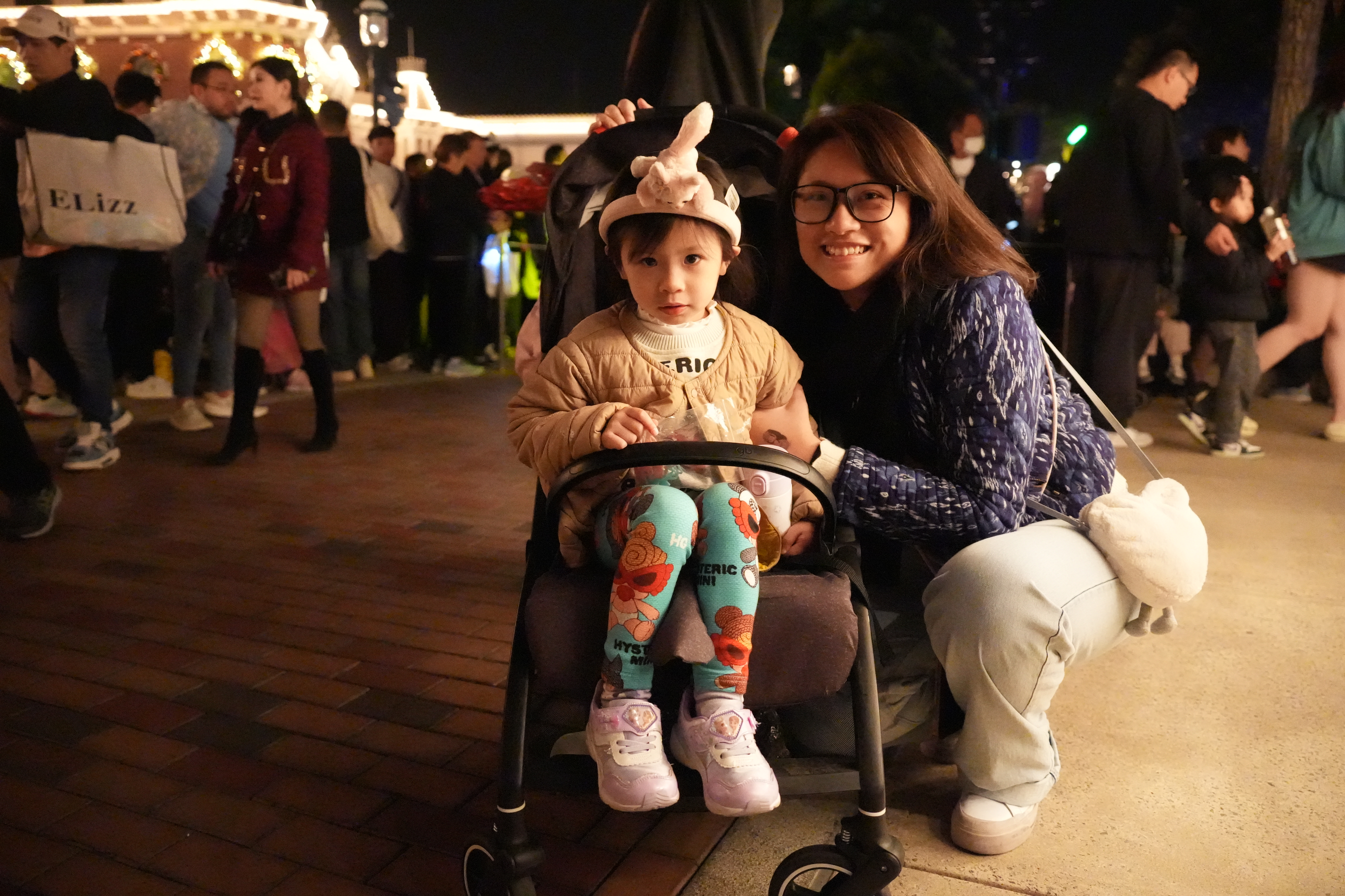 香港市民Vera很喜歡迪士尼這個充滿奇幻和夢想的地方,自己一早購買年票,經常帶同3歲的小朋友來樂園遊玩。她說,知道迪士尼有倒數活動,特地晚上前來感受倒數氣氛。